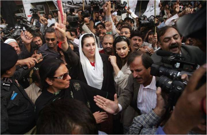 El 18 de octubre de 2007, la ex primera ministra paquistaní retornó a Karachi, después de ocho años de exilio en Dubái y Londres. Su regreso a Pakistán estuvo enmarcado en un acuerdo con el presidente Pervez Musharraf, quien promulgó una ordenanza que anulaba los casos de corrupción abiertos en su contra.