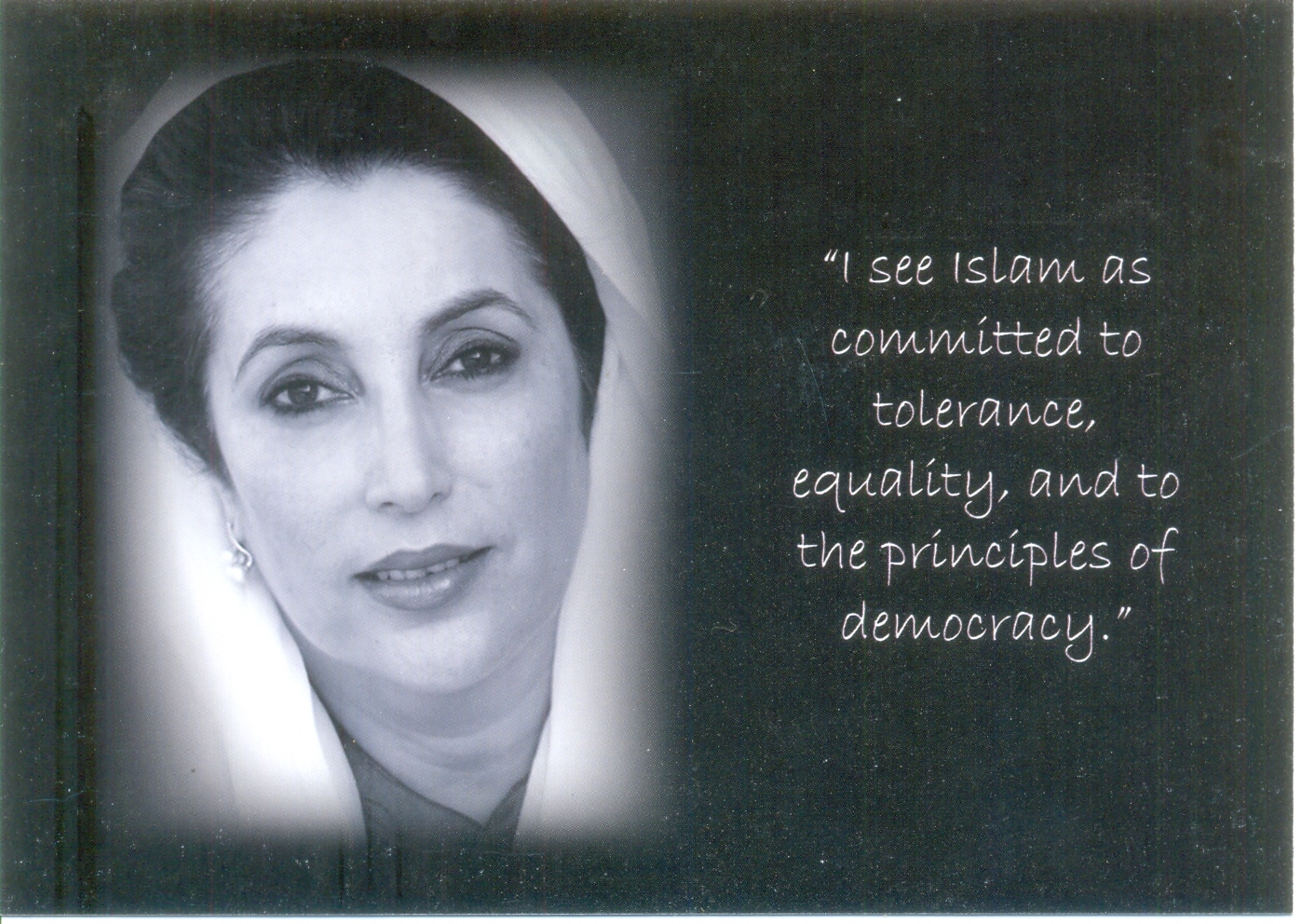 Benazir Bhutto (en urdu: بینظیر بھٹو., Karachi, 21 de junio de 1953 – Rawalpindi, 27 de diciembre de 2007) fue una política pakistaní que dirigió el Partido Popular de Pakistán (PPP) (Urdu: پاکستان پیپلز پارٹی), un partido político de centro-izquierda en Pakistán afiliado a la Internacional Socialista. Entre 1973 y 1977, Bhutto estudió Filosofía, Ciencias Políticas y Economía en el Lady Margaret Hall en la Universidad de Oxford. Así mismo, completó allí un curso en Derecho Internacional y Diplomacia.En diciembre de 1976 fue elegida presidente del Oxford Union, siendo la primera mujer asiática en liderar esta prestigiosa asociación de debate.