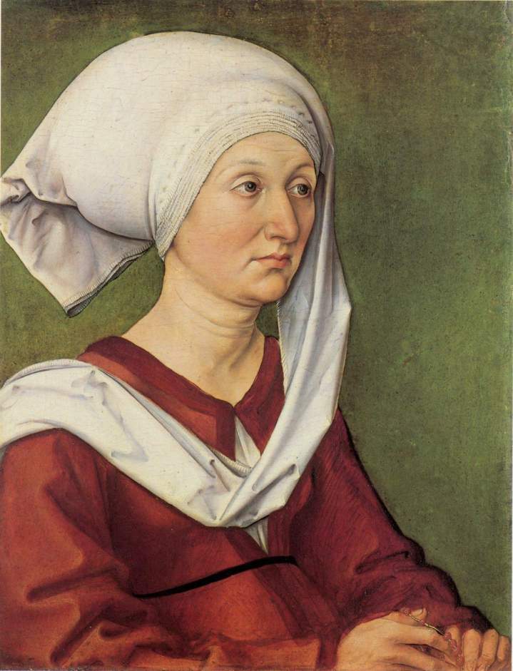 La satisfacción de su propia capacidad artística se comprueba en la inscripción del alfeizar de la ventana, escrita en alemán: “1498, lo pinté según mi figura. Tenía yo veintiséis años Albrecht Dürer”.