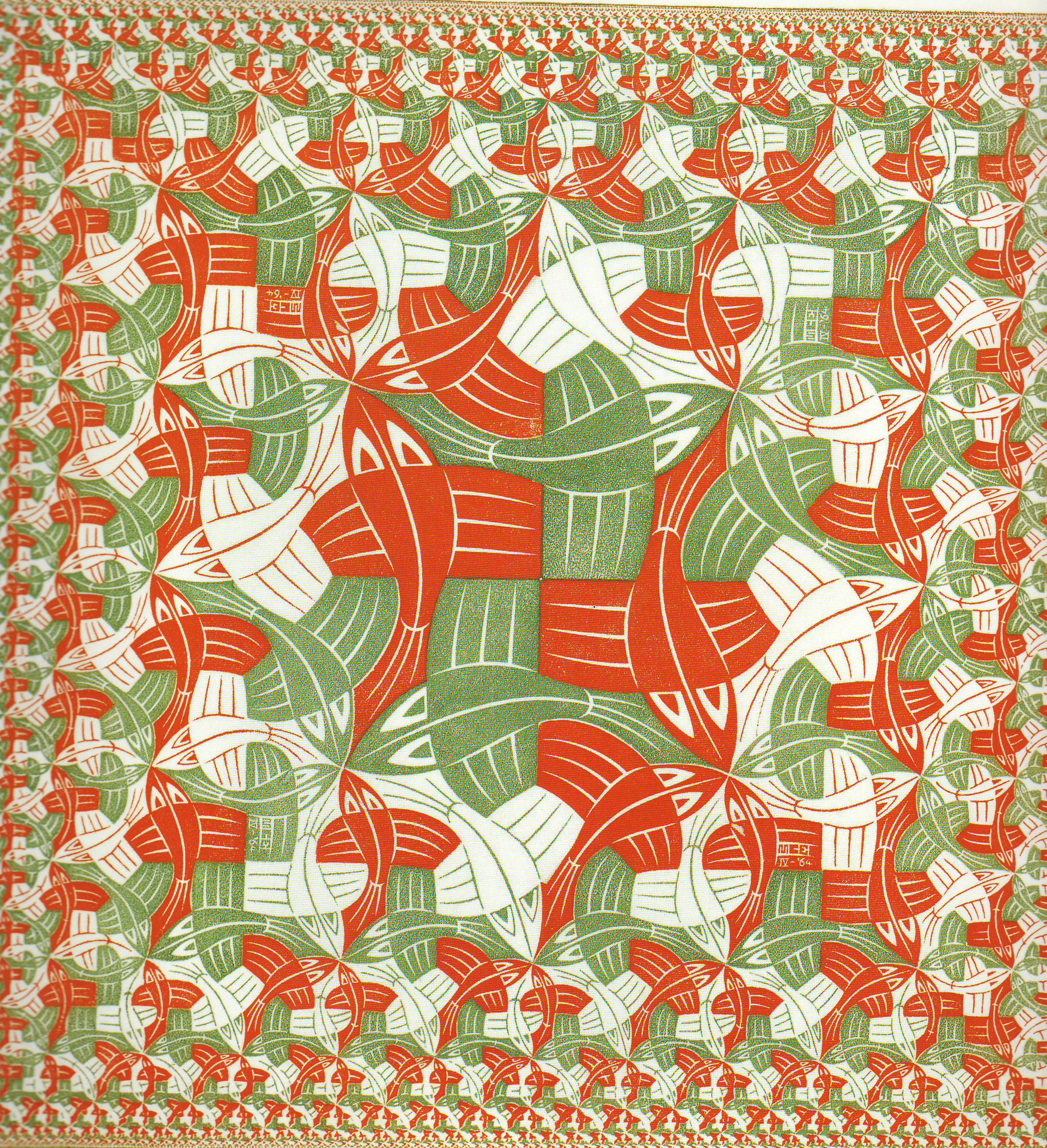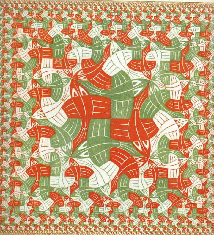 La idea de rellenar el plano con un mismo motivo se considera original suya, no influida por su aprendizaje. Afirmó: «Mucho antes de que, a raíz de visitar la Alhambra, descubriera cuán afín me es el problema de la partición de la superficie, yo había descubierto por mí mismo mi interés por él».