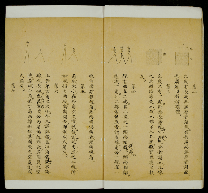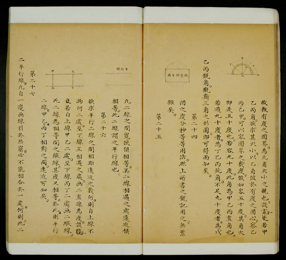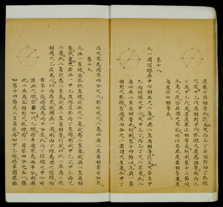 - En 1690, el emperador Kangxi convocó a dos misioneros franceses, Zhang Cheng (Jean François Gerbillon, 1654–1707) y Bai Jin (Joachim Bouvet, 1656–1730) a Pekín para que le enseñaran matemática. Al principio los misioneros consideraron utilizar para este propósito la traducción temprana y parcial de la gran obra de Euclides sobre geometría, Elementosque realizaron Matteo Ricci (1552–1610) y Xu Guangqi (1562–1633), pero creyeron que era demasiado complicada.