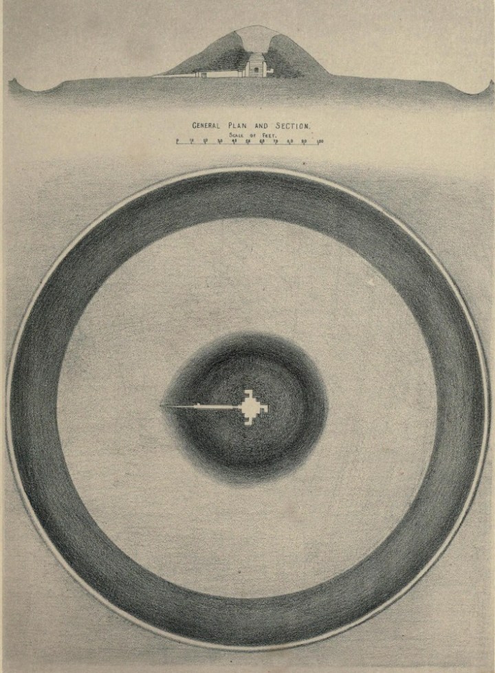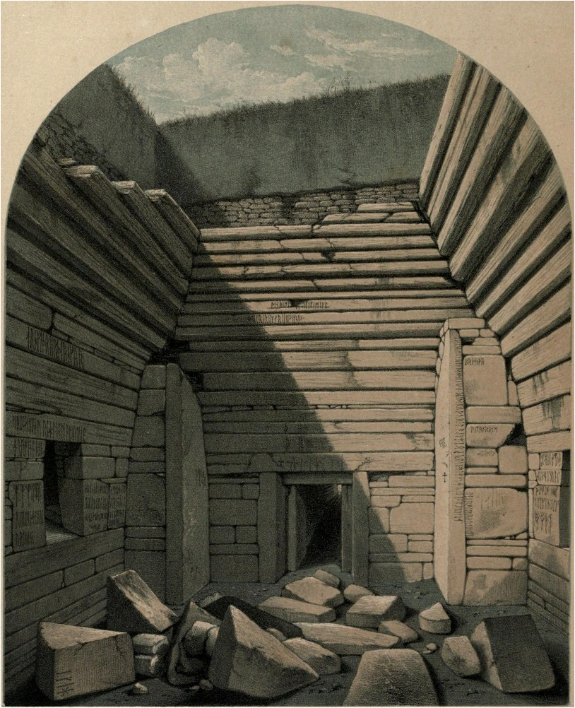 Fue construida empleando 30 toneladas de piedra arenisca, y su diseño hace que la entrada quede alineada para ser iluminada durante el solsticio de invierno.