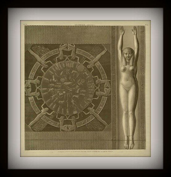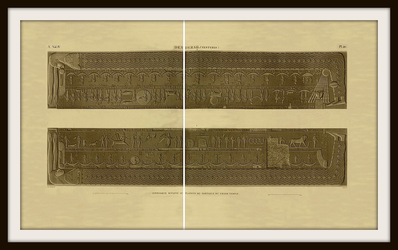 El zodíaco, seguido muy de cerca por la astrología, se infiltró en Egipto entre los siglos II y I a.J.C. Los egipcios, que hasta ese momento desconocían por completo el arte de realizar horóscopos, adoptaron estas nuevas figuras y las integraron en sus representaciones tradicionales del cielo., pintadas en el interior de los sarcófagos o en las paredes de las tumbas. El más espectacular de los zodíacos egipcios es sin duda el de Dendera, un bajorrelieve astronómico descubierto en 1799 en el templo epónimo dedicado a Hathor y conservado actualmente en el Louvre.