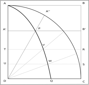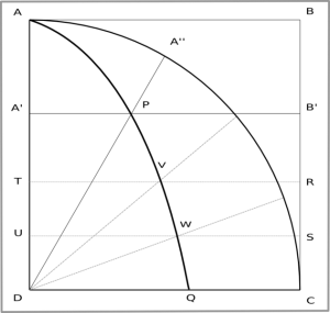 Existen tres problemas principales que preocuparon a los matemáticos griegos y que no pudieron resolver geométricamente, sólo con la ayuda de una regla (sin graduación) y un compás. Se trata de la duplicación del cubo, de la trisección de un ángulo (ambos problemas están relacionados con la obtención de la raíz cúbica de un número entero con métodos geométricos) y la cuadratura del círculo, relacionado con la trascendencia del número pi (pi no puede ser obtenido algebráicamente con ningún polinomio). Fue Proclo y otros comentaristas los que atribuyen a Hipias la construcción de la cuadratriz , que recibe también el nombre el nombre de “trisectriz de Hipias”, que es una curva que permite realizar la trisección de un ángulo y que posteriormente Dinóstrato utilizó también para hallar la cuadratura del círculo, denominándose por ello: cuadratriz. Nota: Esta curva y su construcción ha sido tratada en este blog, este es el enlace: Cuadratriz.