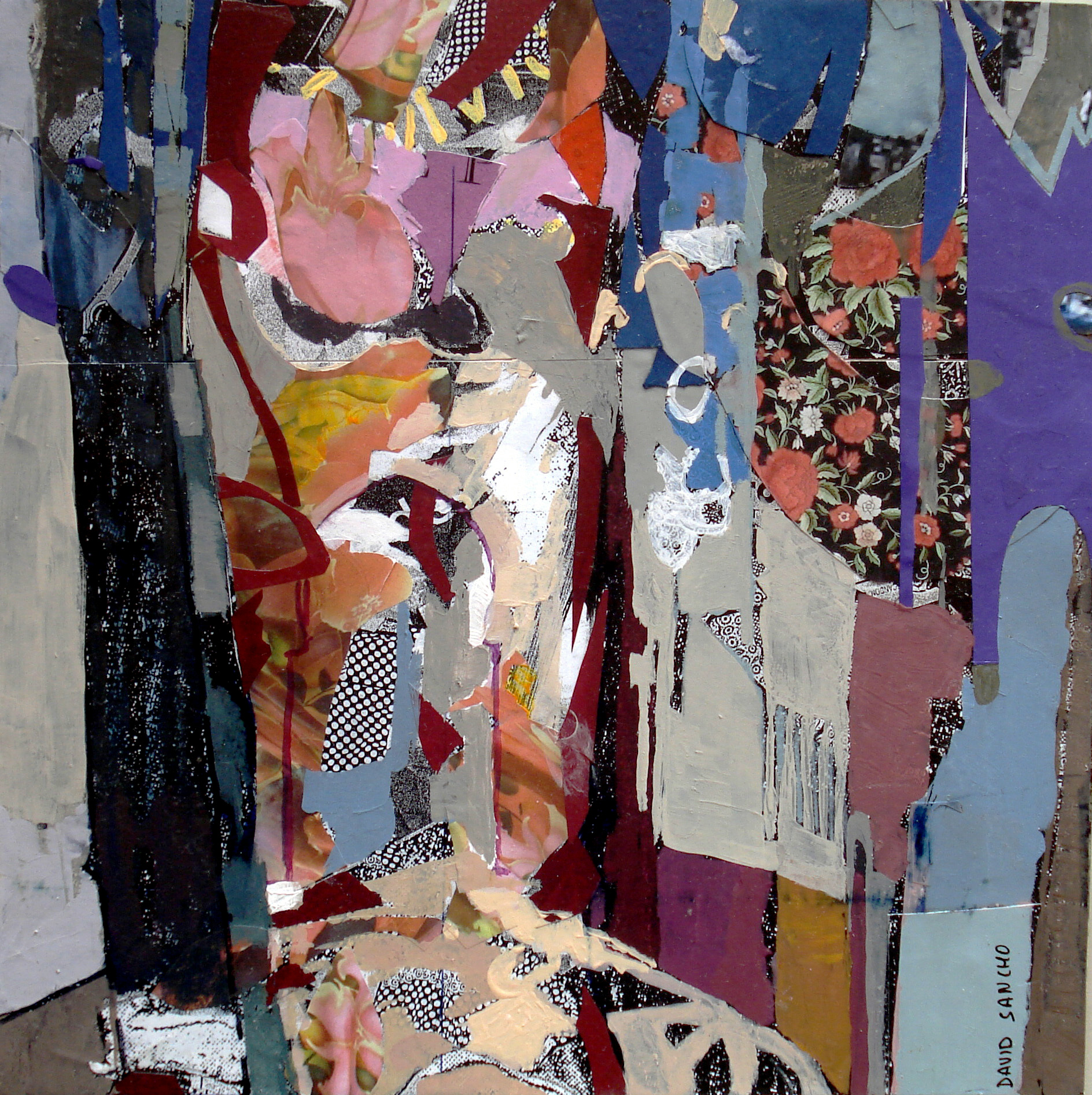 Si bien en los collages de David Sancho se aprecia a primera vista un cierto decorativismoque apunta a la cartelería, estos dos elementos que acabamos de mencionar, el color y la forma, constituyen –junto a la representación esquematizada del entorno magrebí–las líneas por donde discurre su última propuesta artística.