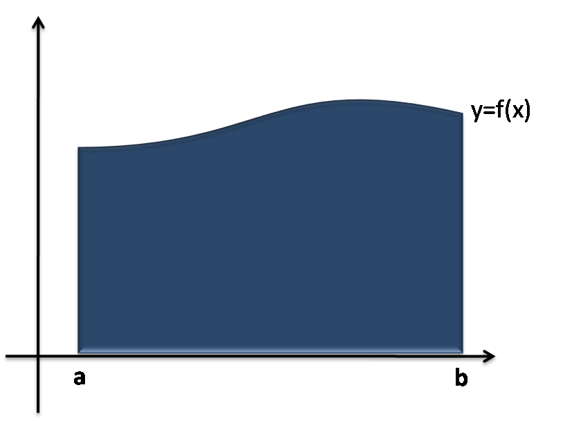 Para hallar el área de una región limitada por la gráfica de una función positiva f definida en [a,b], se divide el intervalo [a,b] en un cierto número de subintervalos, por ejemplo «n», designando por Dxk la longitud del k-ésimo intervalo, se consideran las sumas de la forma: