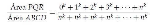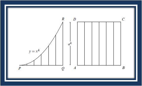 Siguiendo a Cavalieri, Wallis considera la región PQR formada por un número infinito de líneas verticales paralelas, cada una de ellas con longitud igual a xk.