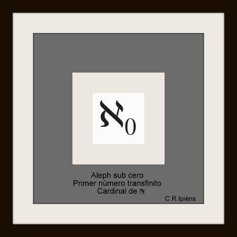 Pues bien, según hemos visto, el cardinal de los naturales, los pares, los impares, los primos, los cuadrados, etc. es el mismo y por tanto numerables. A dicho cardinal Cantor lo representó con el símbolo aleph sub cero. Así pues, aleph sub cero representa el cardinal de los conjuntos infinitos numerables (aquellos que pueden ponerse en aplicación biyectiva con los números naturales) y es, como veremos, el primero del sistema que llamó Cantor de los números transfinitos.