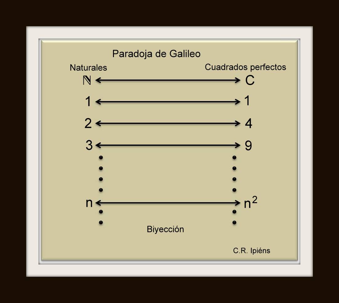 O con los cuadrados perfectos (Paradoja de Galileo):