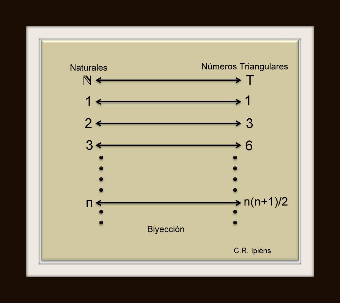 Así, al 1 le asociamos el primer par (su doble) 2, al 2 el segundo par 4, al 3 el tercero 6, a cualquier natural “n” su par asociado 2n y “así sucesivamente” (Es de hacer notar, que con este “sucesivamente”, estamos haciendo uso de un proceso recursivo interminable, pues esta última expresión “así sucesivamente» encierra la misma idea de reiteración ilimitada, al infinito, es decir, estamos haciendo uso del infinito potencial).