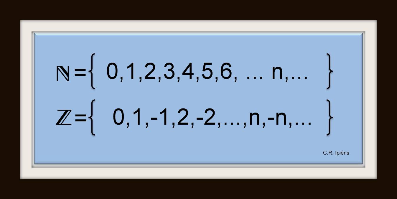 De otro modo ¿qué sucede con los números enteros (es decir, los naturales positivos junto con los negativos y el cero, o con los racionales (enteros y fraccionarios), o con el todopoderoso R de los números reales? que son conjuntos que contienen a N o, por decirlo de algún modo, “más amplios” que N. ¿Son estos conjuntos numerables? O, lo que es lo mismo, ¿pueden ponerse en biyección con N?, ¿poseen por cardinal también a Aleph sub cero?.