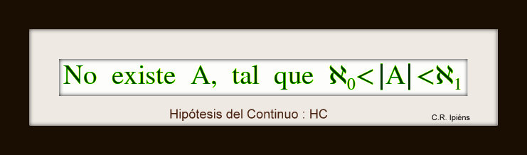 HC: “No existen conjuntos cuyo tamaño esté comprendido estrictamente entre el de los Naturales y el de los números Reales”.
