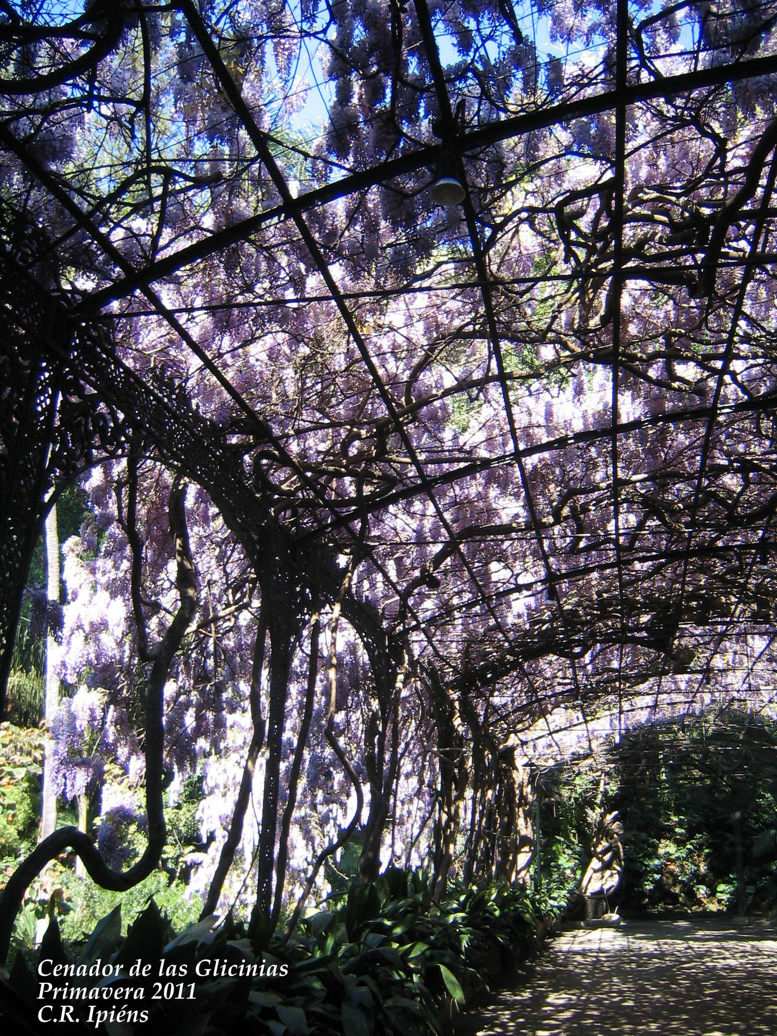 Las glicinias aparecen en uno de los lugares más bellos del Jardín de la Concepción, el cenador de hierro, lugar donde se celebran gran cantidad de bodas sobre todo en esta época del año cuando se produce esta floración.