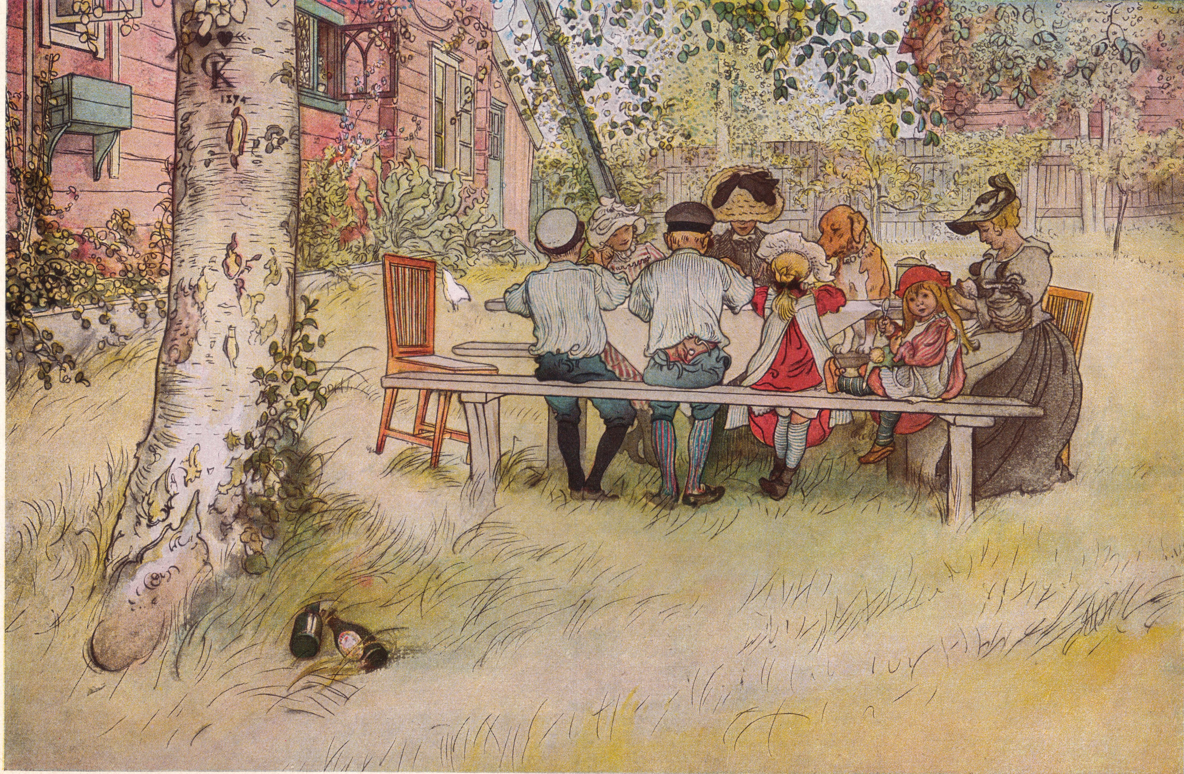 El estilo de Carl Larsson, que bebe del realismo de Barbizon, de la tarjeta postal y del Modernismo a partes iguales, cautivó a la época por la ternura que evocan sus numerosísimas ilustraciones donde representaba a su esposa y a los siete hijos que tuvo con ella: Suzanne, Ulf, Pontus, Lisbeth, Brita, Kersti y Esbjörn, nacido en 1900. Estos niños llegaron a ser tan populares que casi fueron tomados como personajes con identidad propia del arte de entonces.