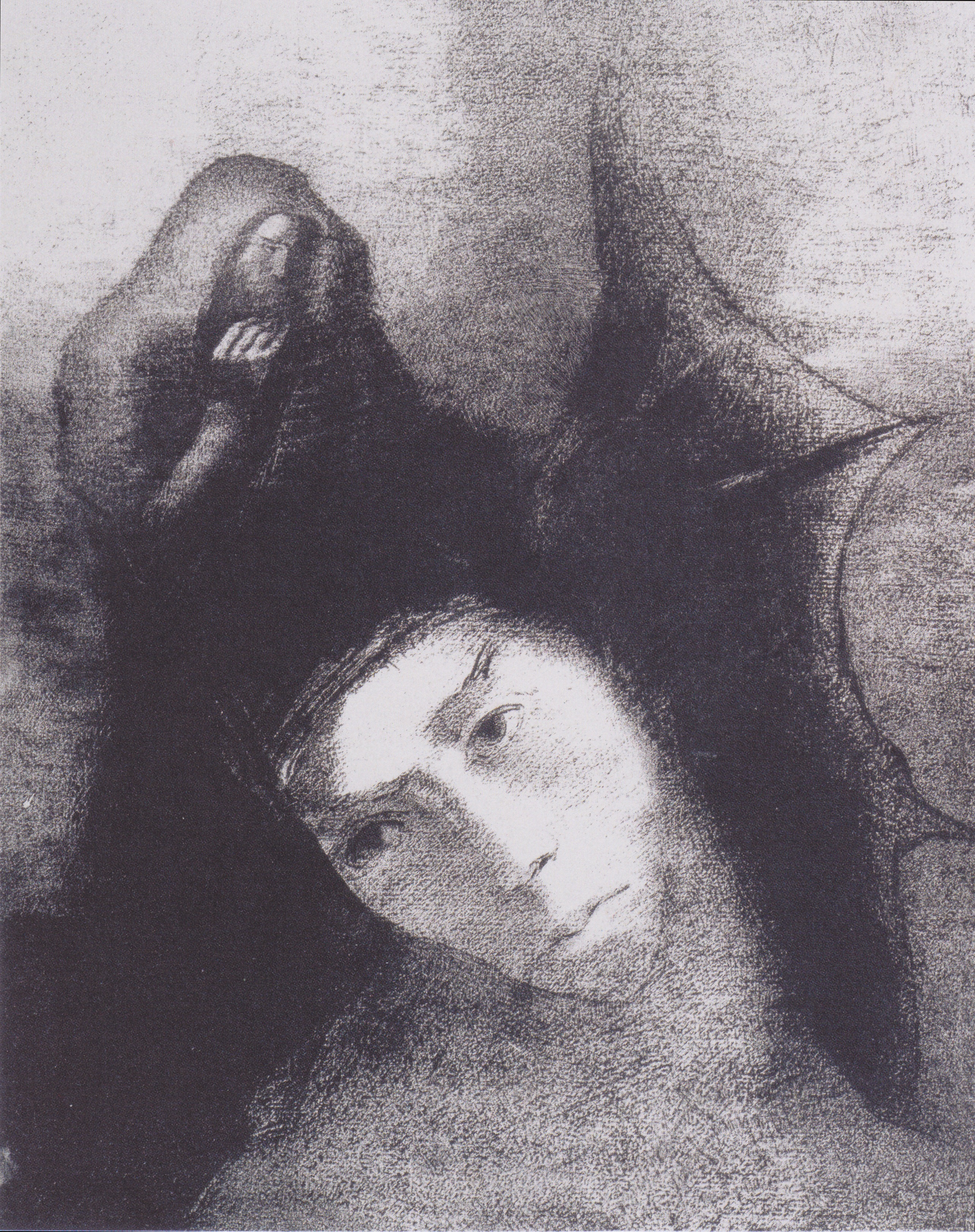 Así, vemos como la obra de Odilon Redon se inicia en curiosa oposición a la corriente impresionista dominante en su época. Mientras los impresionistas experimentan con el color, Redon trabaja en una extraordinaria serie de dibujos y litografías que él mismo llamaría «Los Negros».