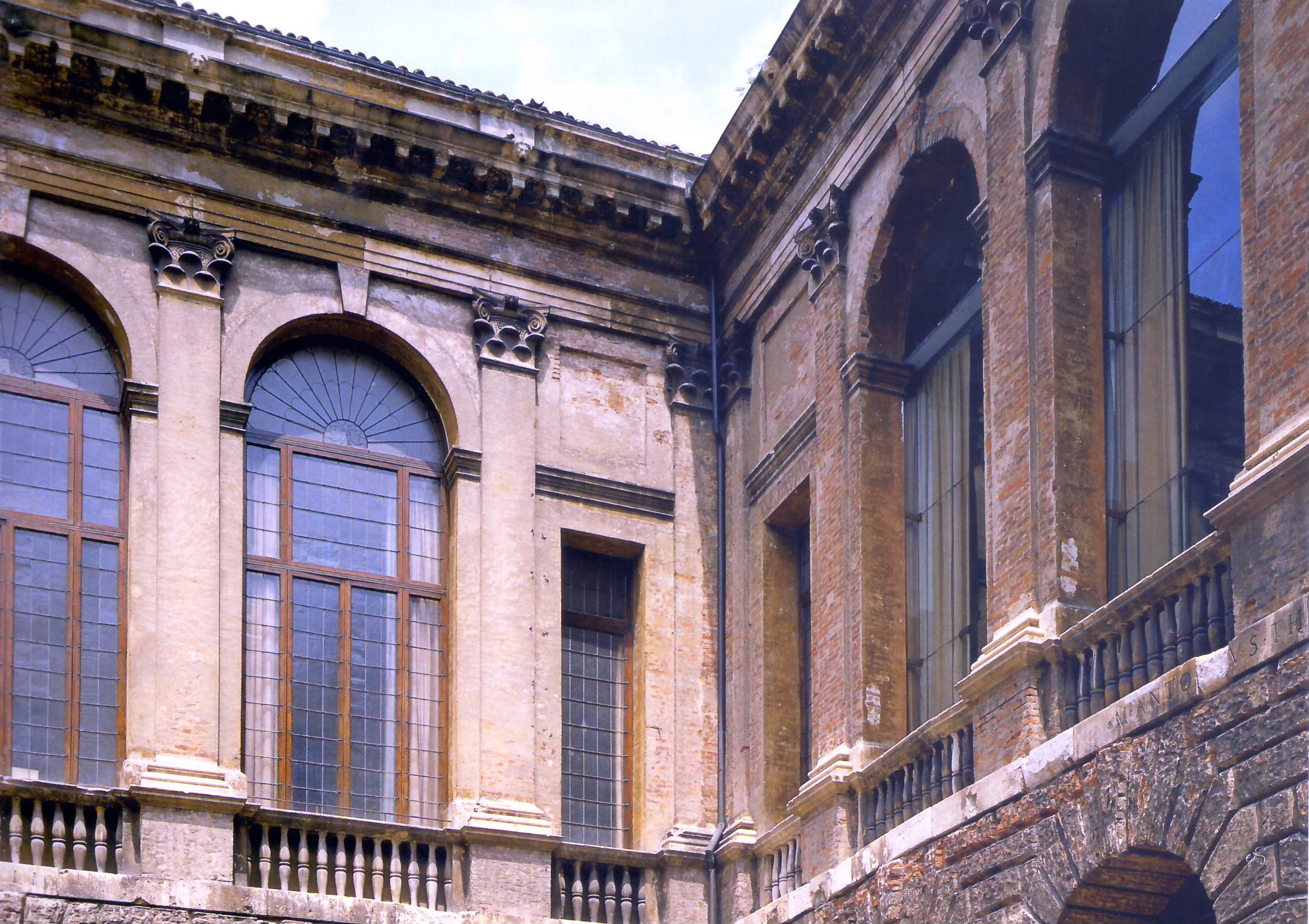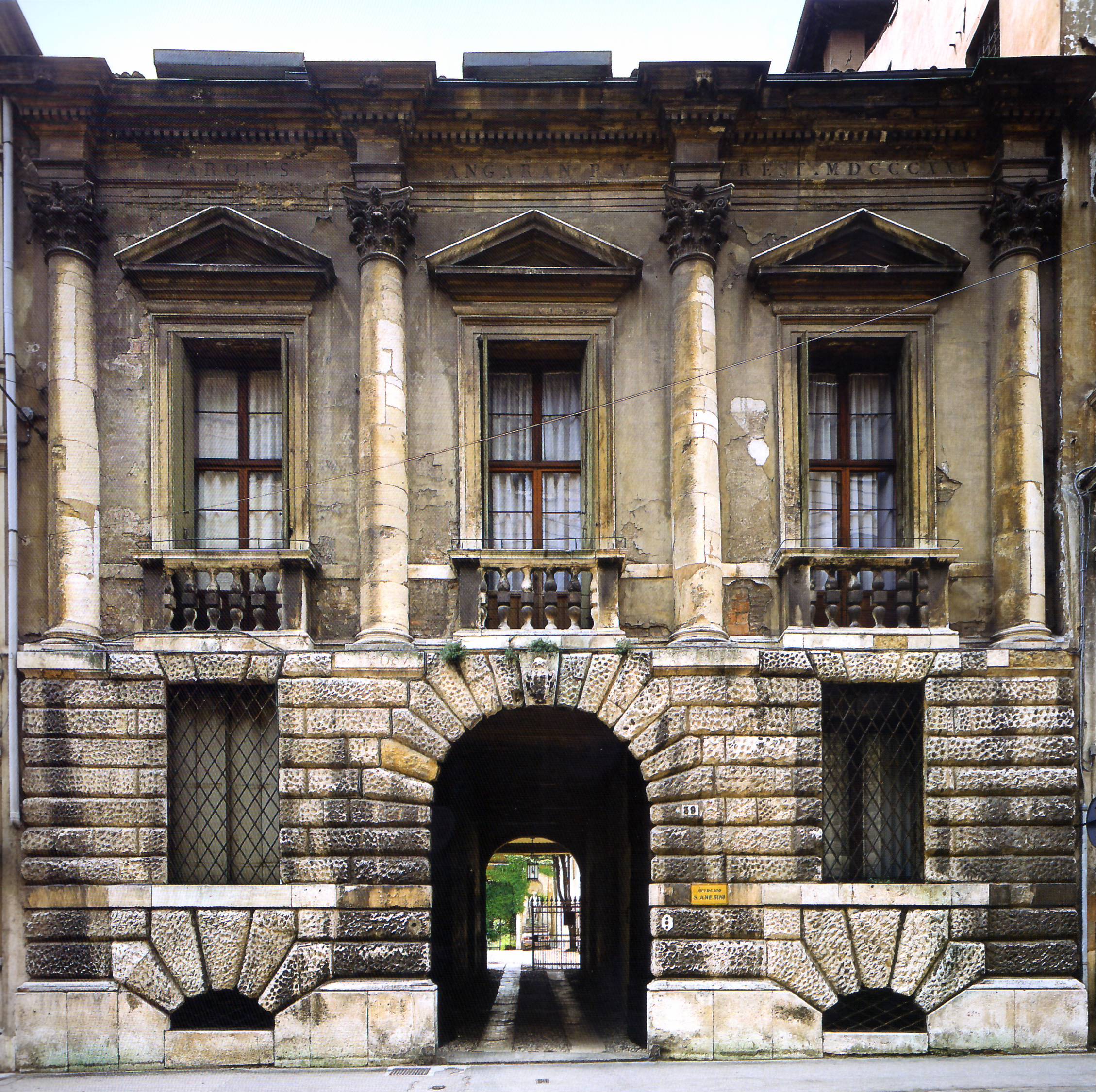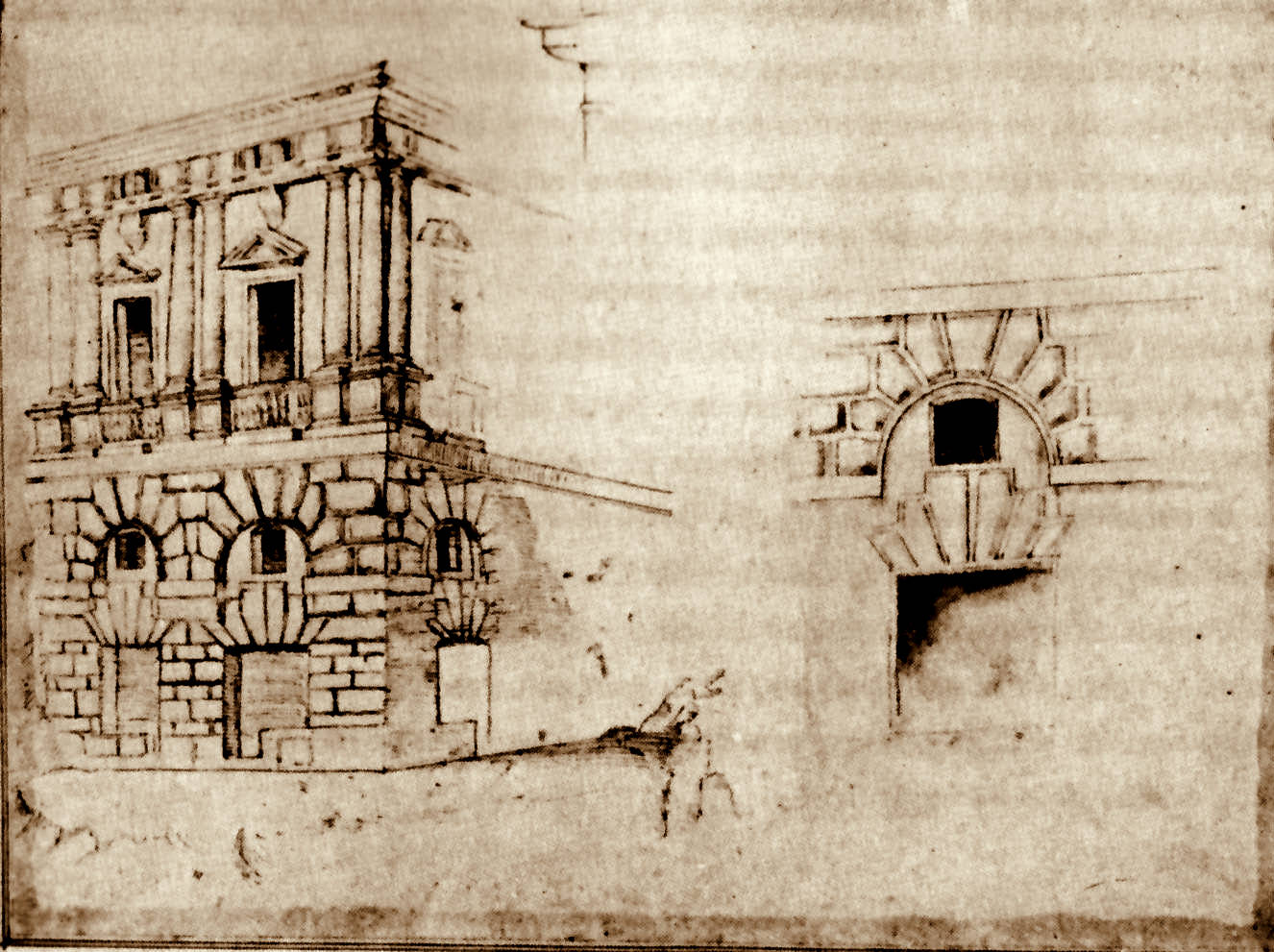 La fórmula para la fachada de la casa-palacio a base de dos plantas sin patio y altas ventanas con balcón en el piano nobile, definitivamente establecida en el diseño de Bramante de 1513 para la casa en que vivía Rafael, fue fundamental en la evolución de Palladio. Este la dibujó con un punto de vista angular que nos revela lo que más llamó su atención: la robusta tridimensionalidad, tanto del cuerpo del edificio, como de los motivos que lo articulaban.