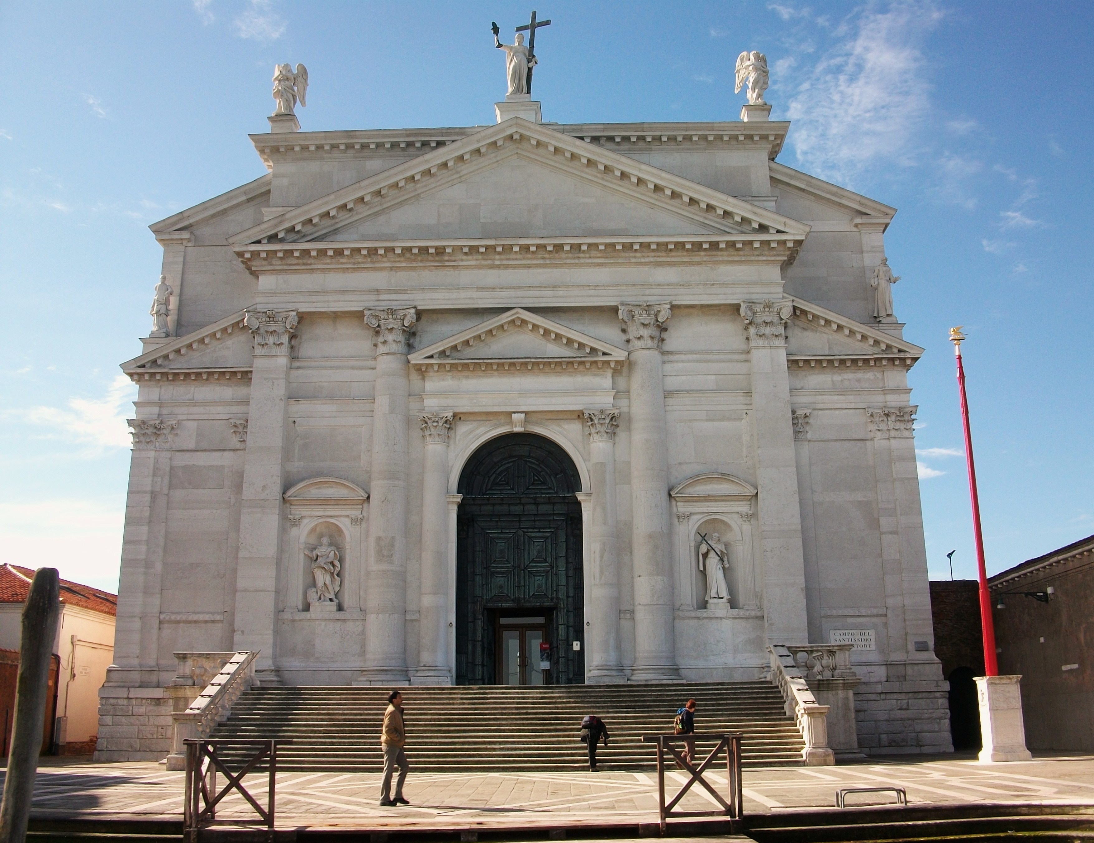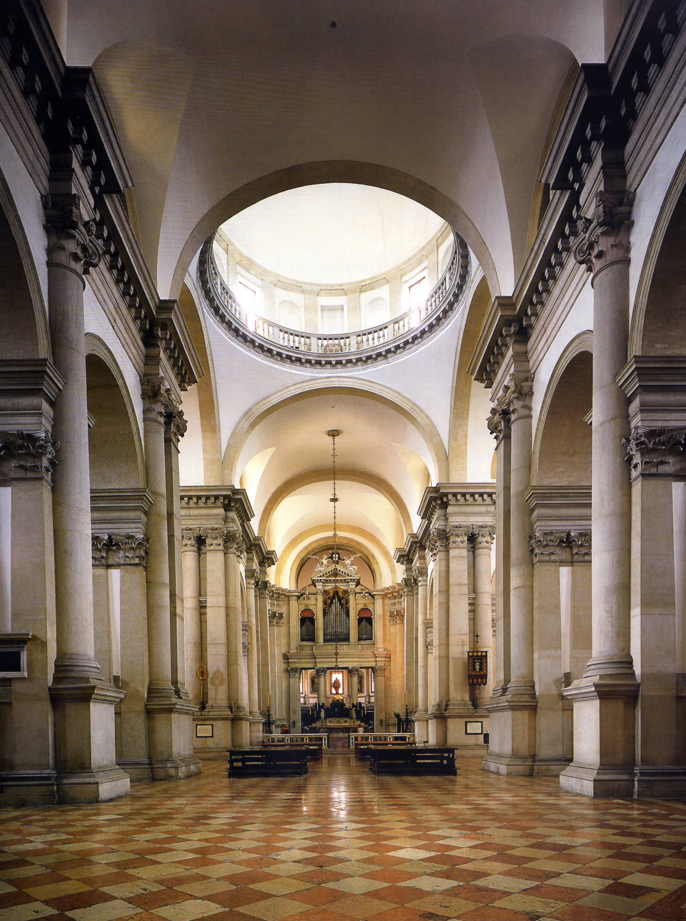 Los primeros encuentros de Palladio con Venecia fueron decepcionantes. Perdió una oposición para un puesto gubernamental en 1554 y, al año siguiente, el diseño de Sansovinopara la Scala d’Oro en el Palacio del Dux fue preferido al suyo. Ninguno de sus diseños de Palacios Venecianos (Quattro libri) se llegó a construir. Hasta 1570 toda la obra veneciana de Palladio fue de carácter eclesiástico. Pero la muerte de Sansovino ese año cambió bruscamente el panorama y Palladio se convirtió en su sucesor de facto, consiguiendo los mejores encargos tanto públicos como privados y tuvo que trasladar a su familia a Venecia en 1570 o 1571. El no se hizo más veneciano por vivir allí, aunque Venecia si se hizo más Palladiana.
