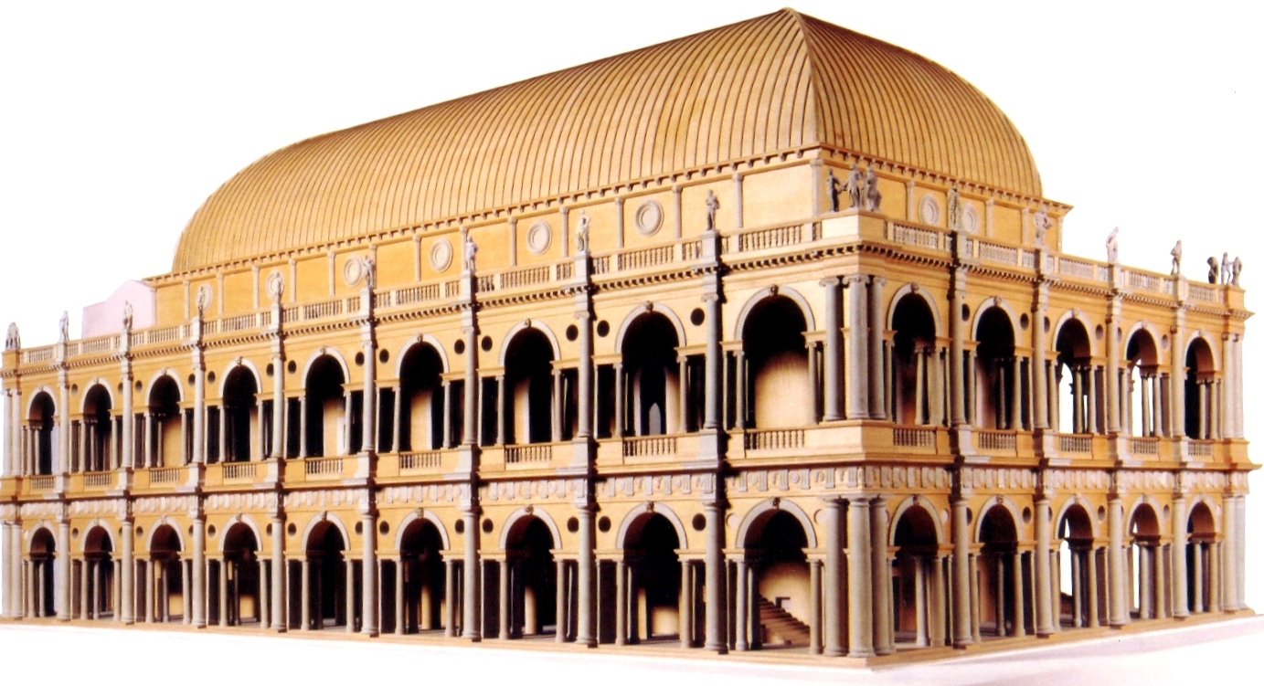 El éxito de estas últimas llevó en 1579-1580 a la construcción de un edificio para la Accademia según diseño de Palladio, y cuyo principal componente era un teatro. El Teatro Olímpico es una especie de discurso académico en tres dimensiones, una reconstrucción erudita del teatro romano antiguo basada en toda una vida de estudio de los monumentos y los textos. Ciertamente la curiosidad arqueológica ensombreció la inventiva arquitectónica en el diseño de este teatro, y su aspecto más fascinante hoy, es su capacidad para recrear un ambiente anticuario-humanista más que para impresionar al visitante con sus formas y espacios.