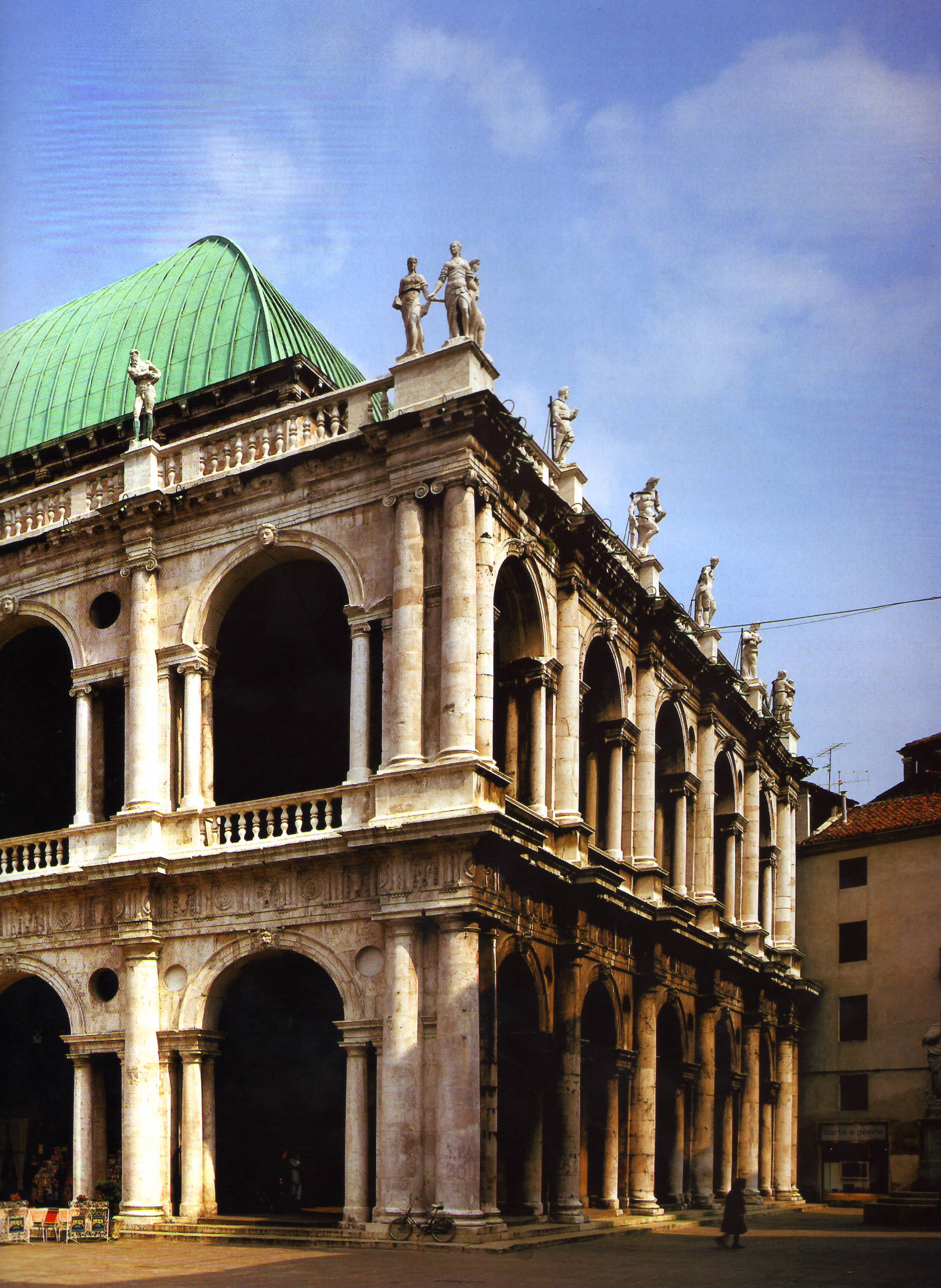 El primero de los libros de Palladio recopila implícitamente las teorías de Serlio y Vignola sobre los órdenes arquitectónicos. El libro II trata de casas urbanas y rústicas a partir de propuestas del arquitecto paduano, y recogiendo ejemplos griegos y romanos, el libro III trata sobre edificios públicos y el libro IV, sobre templos. En este libro, además de estudiar los puentes, Palladio se refiere a las basílicas, tomando como ejemplo la basílica Portia de Roma y la “basílica”, es decir, el lugar destinado a dirigir los asuntos públicos e impartir justicia, que el mismo levantó en Vicenza.