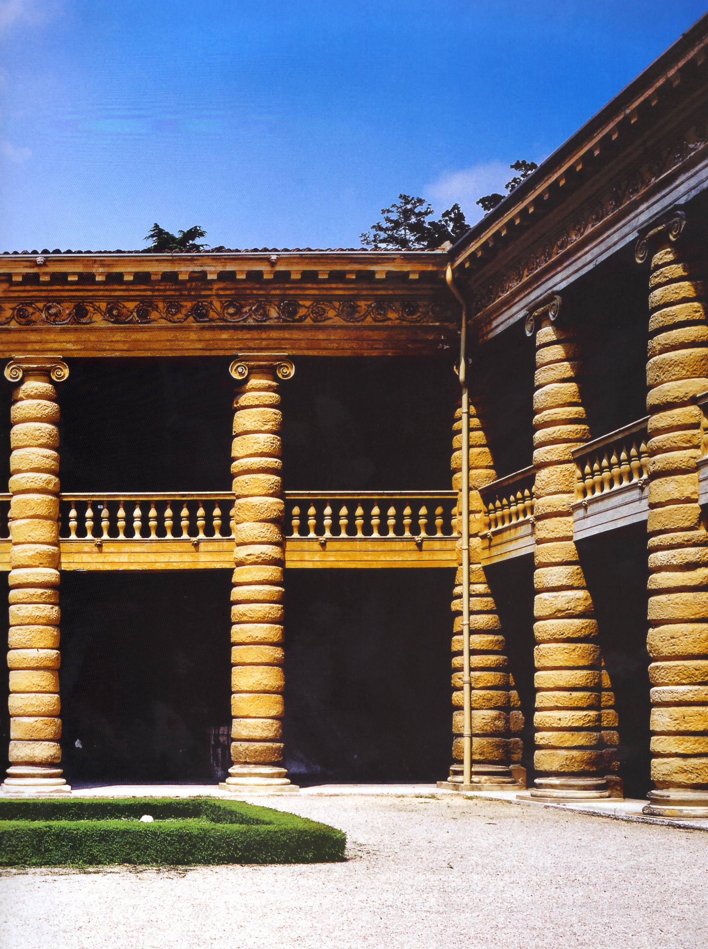 Trissino dejó Vicenza en 1538 y pasó tres años en Padua. Es probable que Palladio le acompañase parte de ese tiempo y que así llegase a conocer a un diletante de la arquitectura aún más estimulante, Alvise Cornaro, y al pintor veronés Falconetto, a quien Cornaro había dado empleo para que le ayudase a diseñar dos estructuras de jardín en el patio de su palacio: una loggia que lleva la inscripción 1524, y un “odeón” para actuaciones musicales de 1530. Estos fueron los primeros edificios del Véneto, precursores y que pretendían emular el Renacimiento romano.