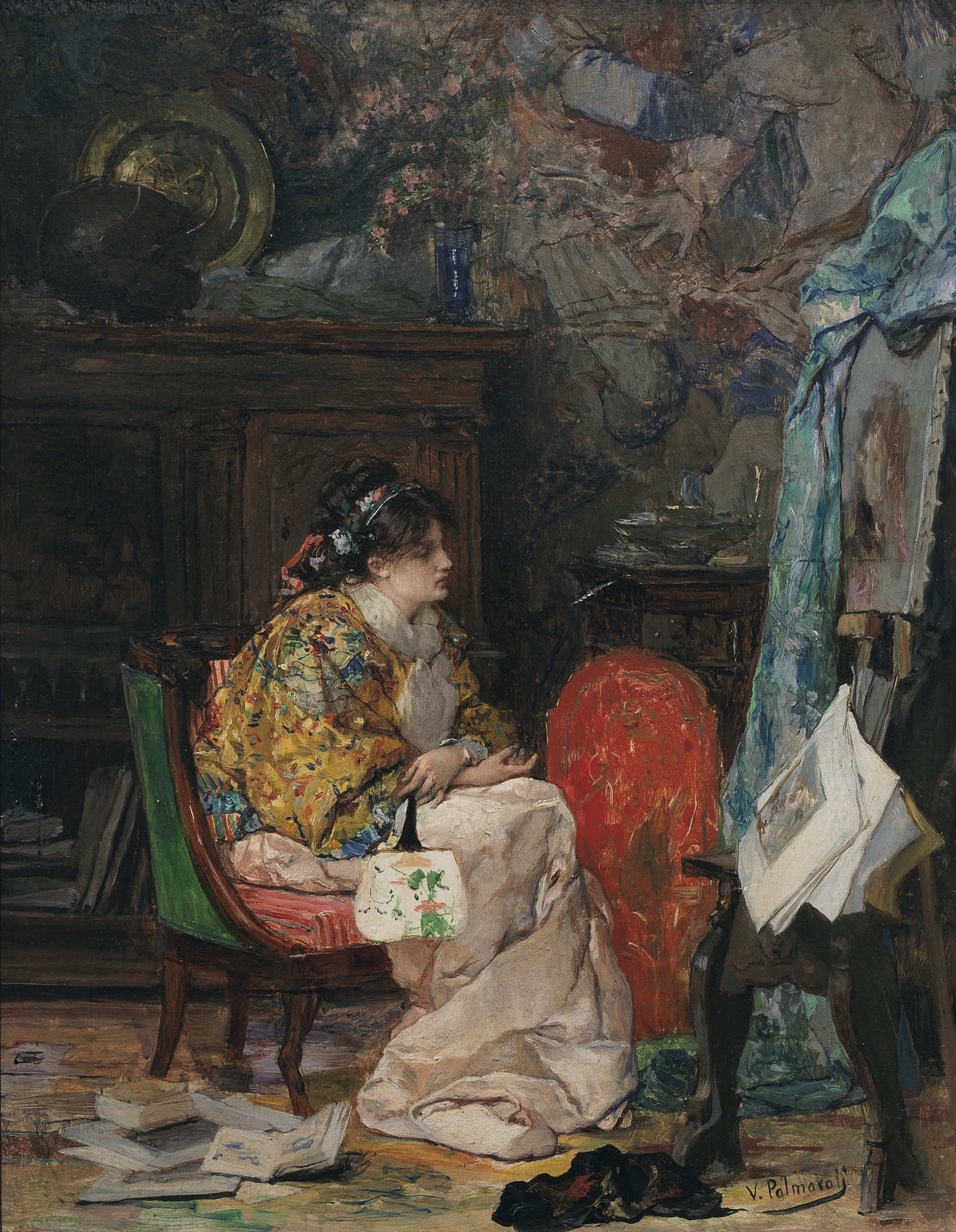 Sermón en el campo, Eugenio Lucas Velázquez. Óleo sobre lámina de cobre, 26 x 40 cm, 1855. Cuadro de gabinete.Sermón a las máscaras, Eugenio Lucas Velázquez. Óleo sobre lámina de cobre, 26 x 40 cm, 1855. Cuadro de gabinete.Aquelarre, Eugenio Lucas Velázquez. Óleo sobre lámina de hojalata, 35,5 x 25,5 cm, H. 1850 – 1855. Cuadro de gabinete.Puerto fluvial junto a un castillo, Eugenio Lucas Velázquez. Óleo sobre lámina de cobre, 21,5 x 29,5 cm, 1850. Cuadro de gabinete.Borracho, Leonardo Alenza y Nieto. Óleo sobre cartón, 22 x 16,8 cm, H. 1835. Cuadro de gabinete.Una escena de la inquisición, Víctor Manzano y Mejorada. Óleo sobre lienzo, 52 x 43 cm, 1859. Boceto.La reina doña Juana la Loca recluida en Tordesillas con su hija, la infanta doña Catalina, Francisco Pradilla y Ortiz. Óleo sobre lienzo, 85 x 145,5 cm, 1906. Cuadro de gabinete.Cabeza de gato durmiendo, Francisco Domingo Marqués. Óleo sobre lienzo sobre tabla, 15 cm de diámetro, H. 1885. Cuadro de gabinete.Autorretrato, Francisco Domingo Marqués. Óleo sobre tabla, 28,5 x 21,5 cm, 1865. Pequeño retrato.Doña Isabel la Católica dictando su testamento, Eduardo Rosales Gallina. Óleo sobre tabla, 22 x 32 cm, 1864. Boceto para el cuadro de mayor tamaño.Interior del estudio de Muñoz Degrain en Valencia, Francisco Domingo Marqués. Óleo sobre tabla, 38 x 50 cm, 1867. Cuadro de gabinete.En el estudio, Vicente Palmaroli González. Óleo sobre tabla, 29,5 x 22,5 cm, 1880. Cuadro de gabinete.Fausto, José María Uría y Uría. Óleo sobre tabla, 16 x 10 cm, 1889. Cuadro de gabinete.Octavia Bouchet, Federico de Madrazo y Kuntz. Óleo sobre tabla, 24 x 17 cm, H. 1860. Pequeño retrato.Penitentes en la Basílica Inferior de Asís, José Jiménez Aranda. Óleo sobre lienzo sobre tabla, 51,8 x 78 cm, 1874. Cuadro de devoción.Los hijos del pintor en el salón japonés, Mariano Fortuny y Marsal. Óleo sobre lienzo, 44 x 93 cm, 1874. Cuadro de gabinete.Estanque en los jardines del Real Alcázar de Sevilla, Raimundo de Madrazo y Garreta. Óleo sobre tabla, 10 x 16,4 cm, 1868. Cuadro de gabinete.Marroquíes, Mariano Fortuny y Marsal. Óleo sobre tabla, 13 x 19 cm. 1872 – 1874. Cuadro de gabinete.La aguadora, Martín Rico y Ortega. Óleo sobre tabla, 21,7 x 34,8 cm, 1875. Cuadro de gabinete.El patio de San Miguel en la catedral de Sevilla, Raimundo de Madrazo y Garreta. Óleo sobre tabla, 15,8 x 10 cm, 1868. Cuadro de gabinete.El jardín de la casa de Fortuny, Mariano Fortuny y Marsal; Raimundo de Madrazo y Garreta, Óleo sobre tabla, 40 x 28 cm, H. 1872 y 1877. Cuadro de gabinete.Palmeras de Elche, Carlos de Haes. Óleo sobre cartón, 14,3 x 40,8 cm, H. 1861. Apunte.Un bosque de palmeras (Elche), Carlos de Haes. Óleo sobre papel pegado a cartón, 17,7 x 41 cm, H. 1861. Apunte.Desnudo en la playa de Portici, Mariano Fortuny y Marsal. Óleo sobre tabla, 13 x 19 cm, 1874. Cuadro de gabinete.Fauno (desnudo infantil), Ignacio Pinazo Camarlench. Óleo sobre tabla, 10,5 x 18,5 cm, 1888. Cuadro de gabinete.Desembocadura del Bidasoa, Martín Rico y Ortega. Óleo sobre lienzo, 39,3 x 72 cm, 1872. Cuadro de gabinete.En vue, Vicente Palmaroli González.Óleo sobre tabla, 43 x 22 cm, 1880. Cuadro de gabinete.Bosque de hayas (Alsasua), Carlos de Haes. Óleo sobre tabla, 14,5 x 22 cm, H. 1875. Apunte.Restos de un naufragio (San Juan de Luz), Carlos de Haes. Óleo sobre tabla, 19 x 28,7 cm, H. 1882. Estudio preparatorio para Un barco naufragado (Museo del Prado).Maximina Martínez de Pedrosa, con mantilla, Eduardo Rosales Gallina. Óleo sobre cartón, 34 x 27 cm, H. 1867. Pequeño retrato.Luisa Bassecourt y Pacheco, Federico Madrazo y Kuntz. Óleo sobre tabla, 41 x 32 cm, 1869. Pequeño retrato.Louise Amour Marie de la Roche-Fontenilles, marquesa de Rambures, Federico Madrazo y Kuntz. Óleo sobre lienzo, 38,5 x 30,5 cm, H. 1871. Pequeño retrato.Adán dormido, Juan Samsó. Terracota, 20 x 36 x 12,5 cm, 1882.