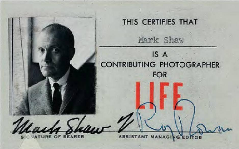 Mark Shaw (25 junio 1921 hasta 26 enero 1969) fue un señalado fotógrafo estadounidense de la moda y las celebridades en los años 1950 y 1960. Trabajó para la a la revista Life 1952-1968, en la que 27 temas de la vida llevaron fotos de portada de Shaw . La obra de Shaw también apareció en Esquire , Harper ‘s Bazaar , Mademoiselle , y muchas otras publicaciones.