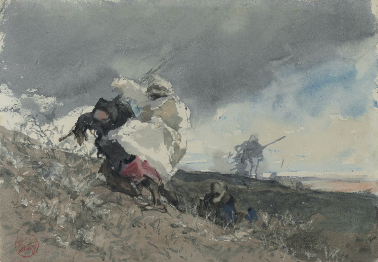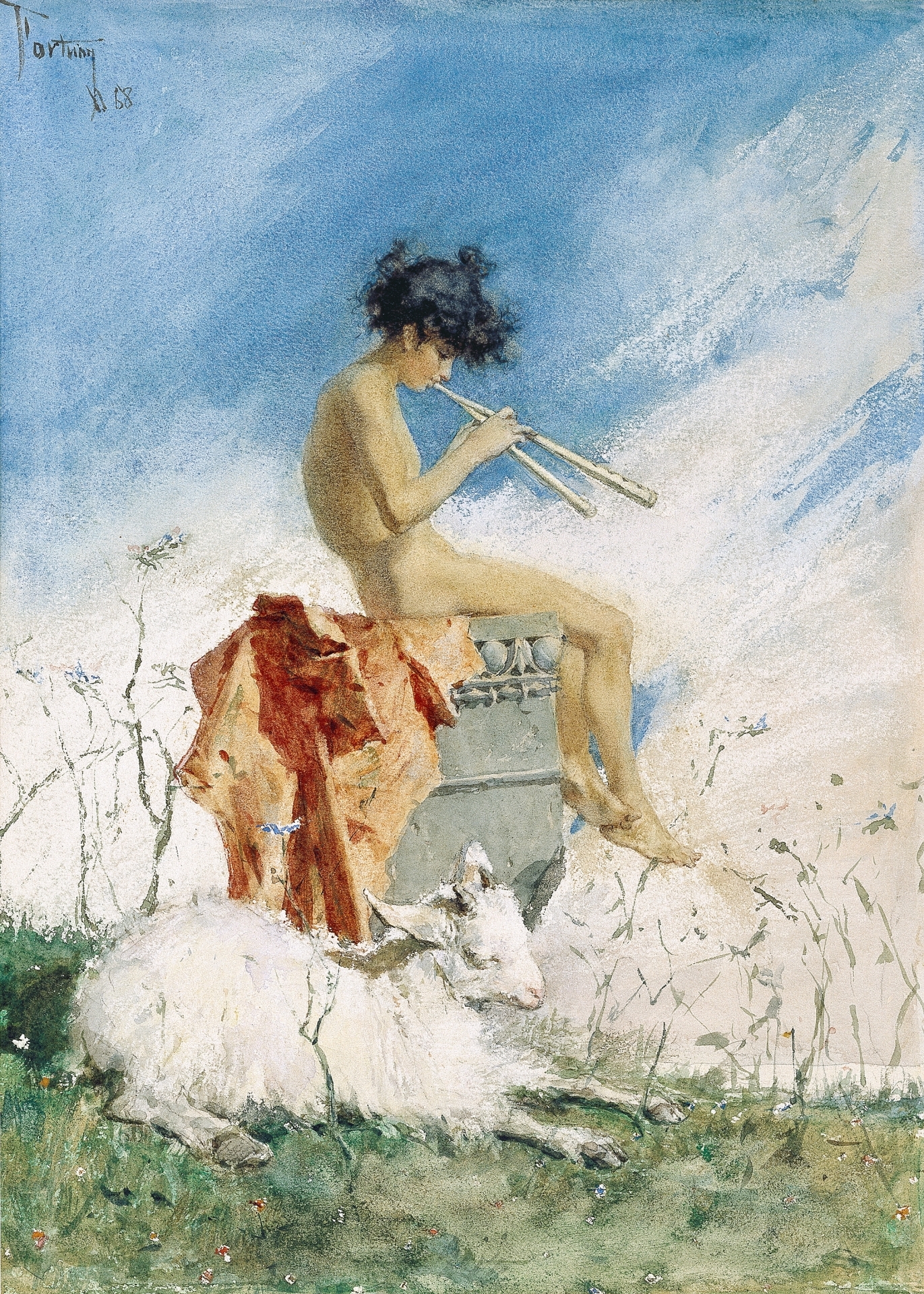 Mariano Fortuny Marsal (Reus 1838-Roma 1874). De familia humilde y huérfano a los pocos años, quedó bajo la tutela de su abuelo, modesto artesano que alentó la vocación artística de Fortuny. Se inició como pintor en Reus, y en 1852 pasó a Barcelona, donde siguió los cursos de la escuela de bellas artes (1853-1856), a la vez que frecuentaba el taller de Claudio Lorenzale. En 1857 ganó la beca para Roma; el cuadro que le valió este premio fue Ramón Berenguer III clavando la enseña de Barcelona en la torre del castillo de Foix, cuyo estilo patentiza la influencia de Lorenzale, seguidor de los nazarenos alemanes (El nombre Nazareno fue adoptado por un grupo de pintores del Romanticismo alemán, nacidos en torno a 1785. A este estilo de principios del siglo XIX también se le conoce como Purismo nazareno. Es el grupo pictórico más coherente del romanticismo alemán; pretendían revivir la honradez y espiritualidad del arte cristiano medieval).