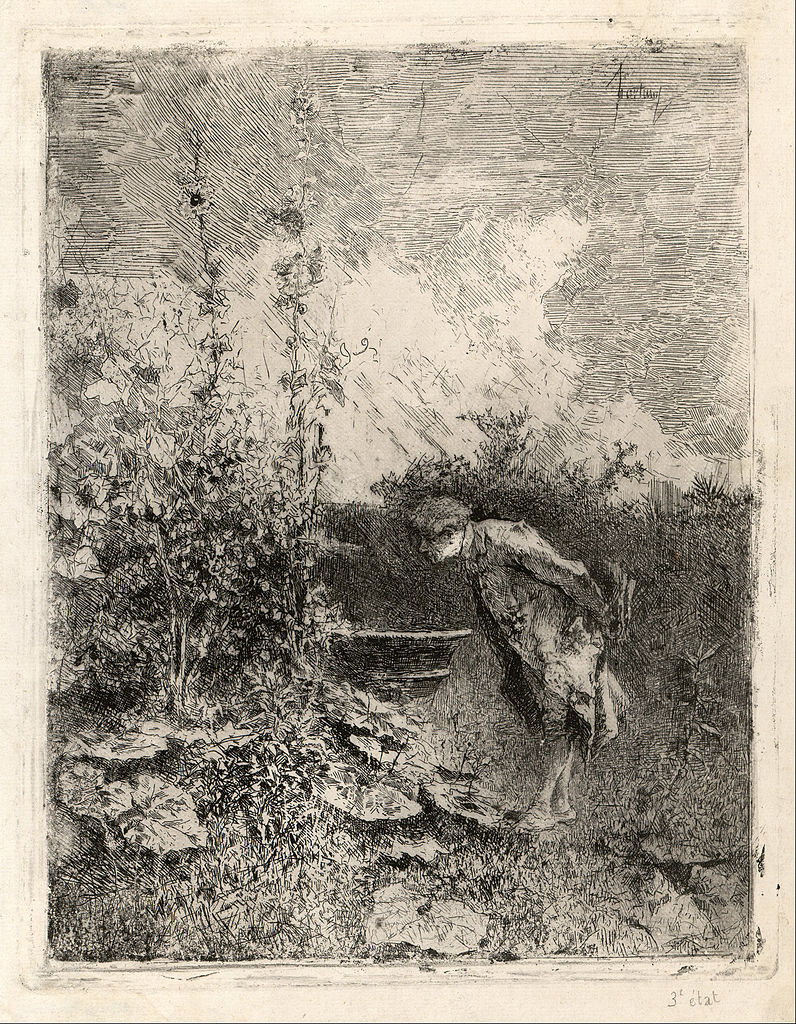 Sobre 1861 datan sus primeros trabajos como grabador, especialidad que le condujo al estudio de las estampas de Rembrandt, Ribera, Tiépolo, y Goya, cuyo influjo se vio reflejado también en su evolución pictórica.