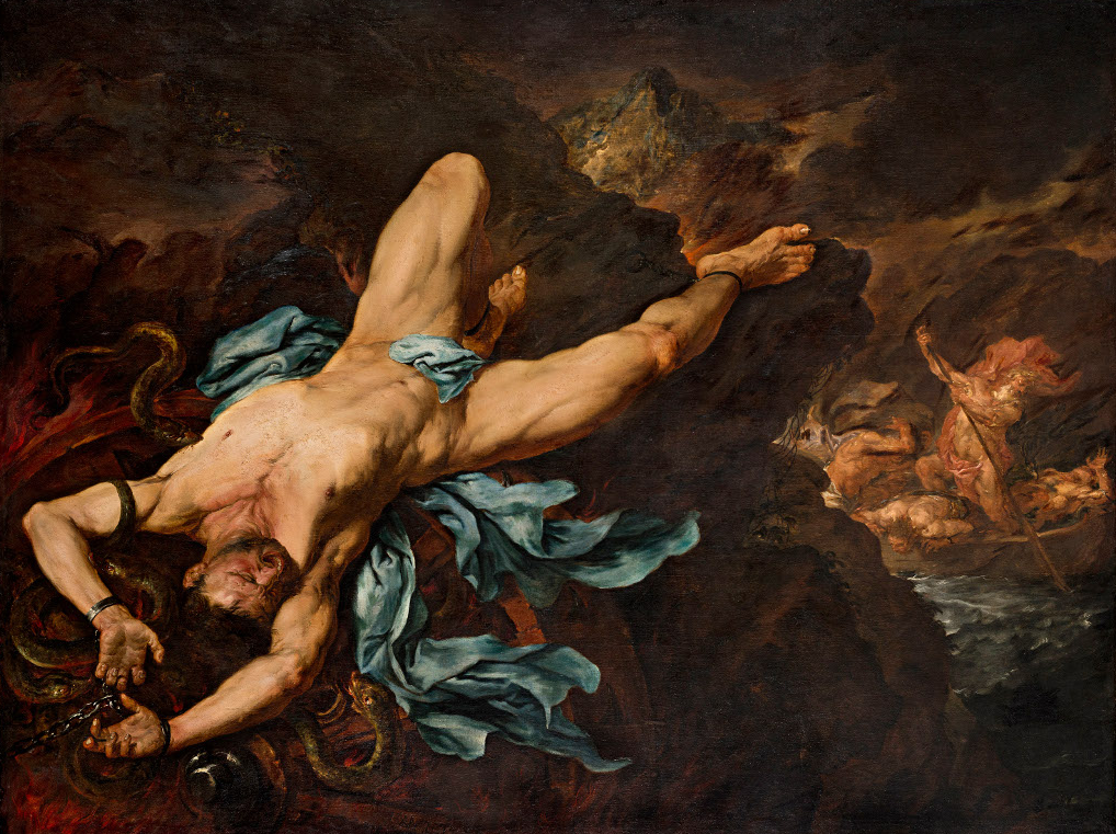 De todas las almas de difuntos del Hades destacan, sin embargo, la de los “grandes condenados”, que no faltan en ninguna descripción antigua de los infiernos: su objetivo es de servir de ejemplo y aleccionamiento para evitar los mayores pecados y, en particular el de hybris o desmesurado orgullo frente a los dioses. En la Antigüedad, estos personajes sufrientes suelen aparecer formando un grupo en las figuraciones de los infiernos; en la Edad Moderna, lo normal es que compongan ciclos de pinturas o de grabados (como se presenta en esta exposición) o bien en la ilustración de textos que describen sus suplicios.