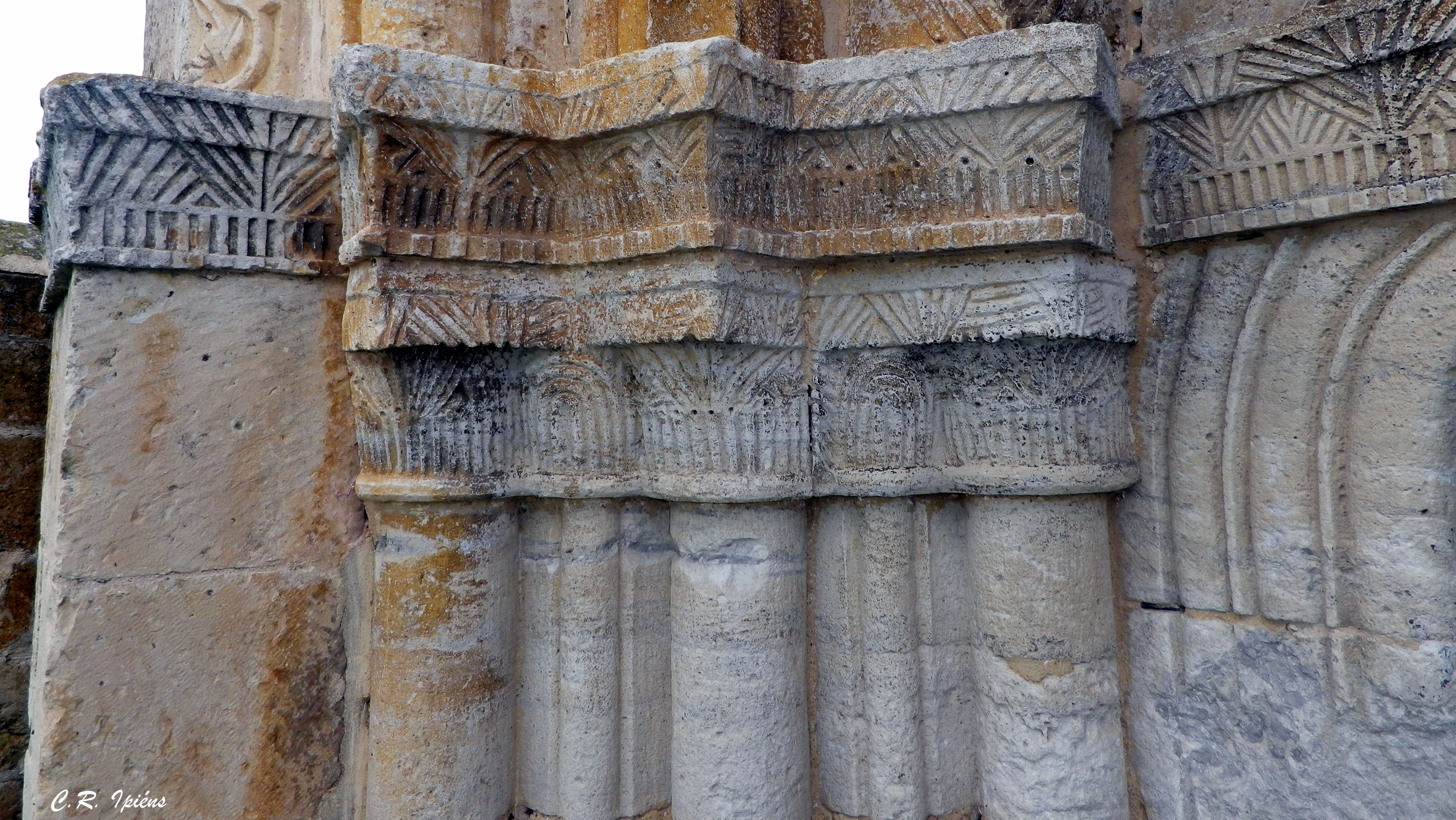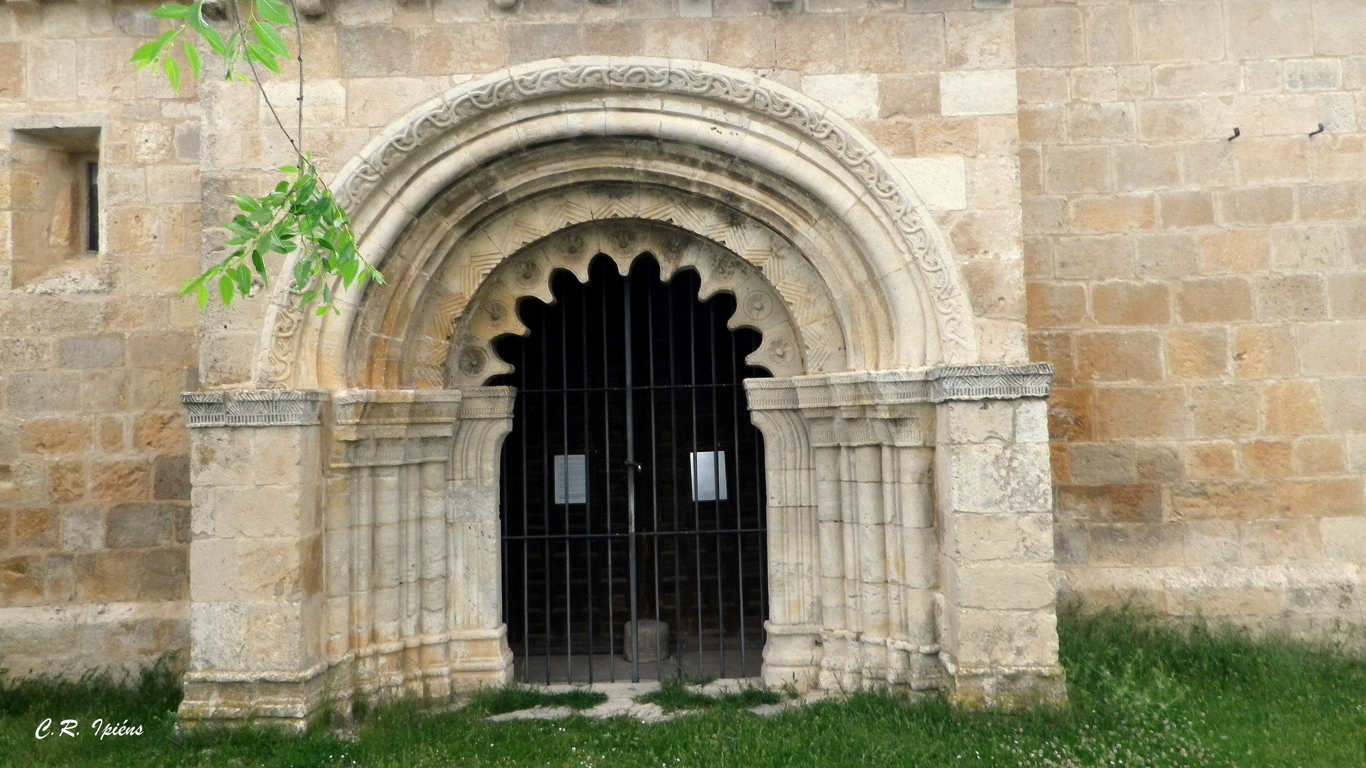 Esta portada presenta el mismo esquema compositivo que las mencionadas de Campisábalos (San Bartolomé y Capilla de San Galindo). Consta de un arco de ingreso lobulado, con una especie de medallones avenerados que albergan florones. Sigue a continuación una arquivolta con zigzags contrapuestos, otra de nacela, otra de baquetón y por último un guardapolvo decorado de tallos ondulantes de hojas picudas. La línea de imposta y las seis columnas que soportan las arquivoltas muestran motivos vegetales y geometrizados.