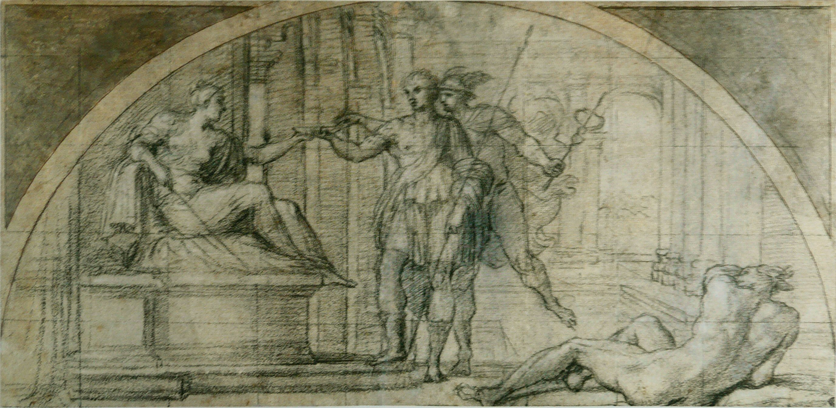 Dibujo de los años 1590, obra de A. Carracci: Hermes protege de Circe a Odiseo.