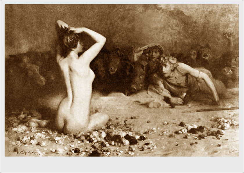Si Astarté (Ishtar) envilecía a los hombres provocando en ellos sus instintos más bestiales, Circe los convertirá materialmente en animales. No es extraño pues que muchos pintores fin-de-siècle vieran en el personaje de esta maga un claro ejemplo de los peligros del sexo femenino y desearan representarla en sus obras.