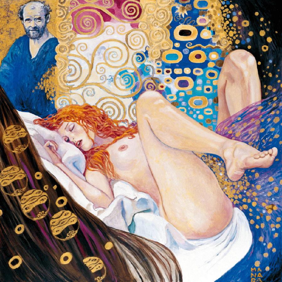 Gustav Klimt comentó: <<Todo arte es erótico>>. Él se inspiró en el orgasmo femenino, y su obra incluye numerosos estudios de mujeres masturbándose. En esta pintura, Klimt ha retratado a Dánae, hija de Acrisio, en el momento del orgasmo. La lluvia dorada que cae en cascada desde arriba es el dios Zeus, penetrando en su cuerpo tras haber descubierto que el rey Acrisio tiene encerrada a su hija para intentar romper la profecía de que su nieto lo asesinaría. Zeus fecunda así a Dánae, y su vástago Perseo acaba matando al rey.