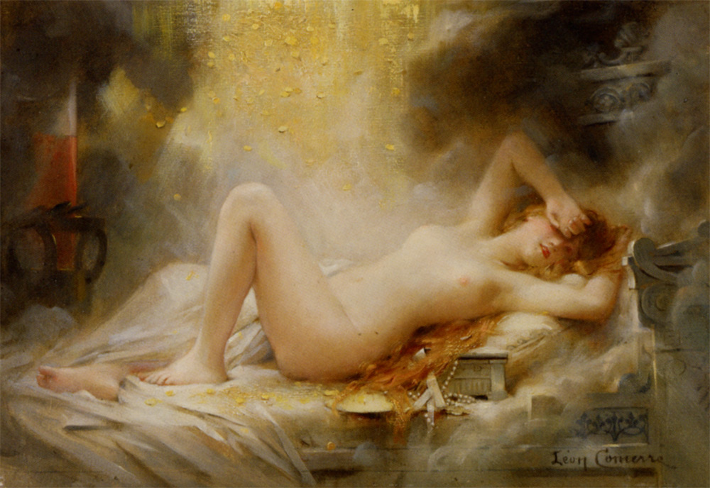 Léon Comerre (1850-1916), Dánae y la Lluvia de Oro, 1908. Óleo sobre lienzo.