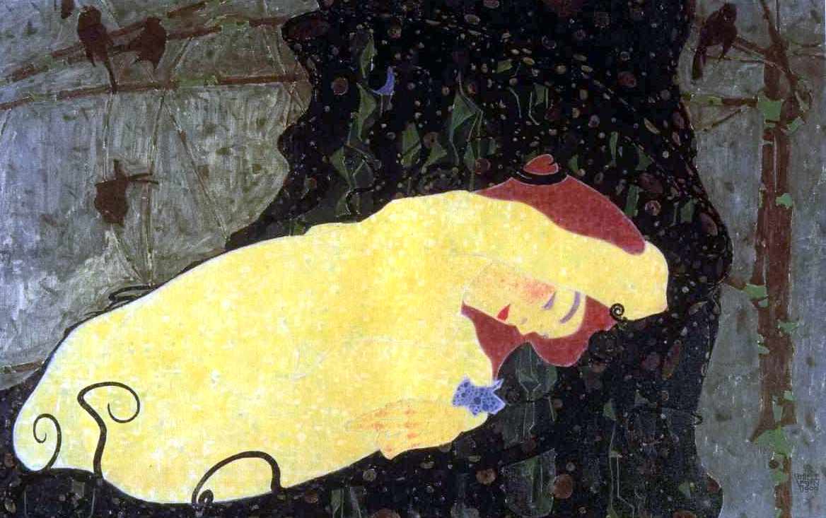 Pero la figura de Dánae no se agotó con el Barroco dieciochesco. Si E.C. Burne-Jones se planteó un tema nuevo -Dánae contemplando cómo su padre construye la torre en la que va a ser encerrada (1872)-, la lluvia de oro, real o simbólica, se renovó con un intérprete tan excepcional como G. Klimt -puede verse en este blog: Dánae: Gustav Klimt, hacer clic-. Hace pocas décadas B. Civitico (1980) aún la ha imaginado como la luz del atardecer entrando por una ventana para inundar a una mujer semidesnuda….”