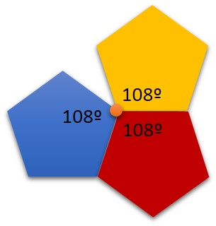 Vemos que el plano no se puede recubrir con pentágonos regulares puesto que 360º no es divisible por 108º que es la medida de un ángulo interior de un pentágono: 360º = 3 · 108º + 36º.