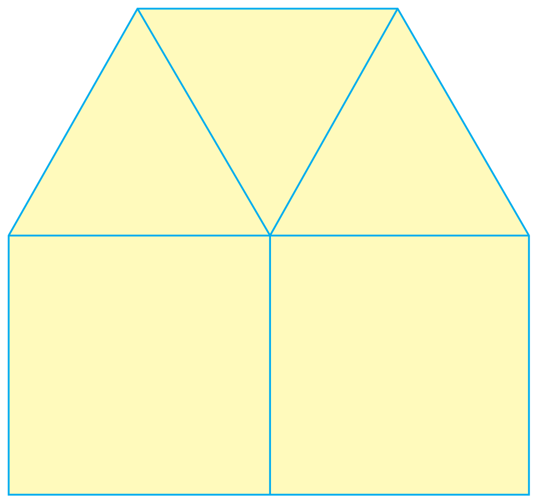 El pentágono posee aquí 5 lados de la misma medida. Tiene dos ángulos rectos, un ángulo de 144° y dos ángulos de 108°.Como para todo pentágono, la suma de sus ángulos es de 540°.