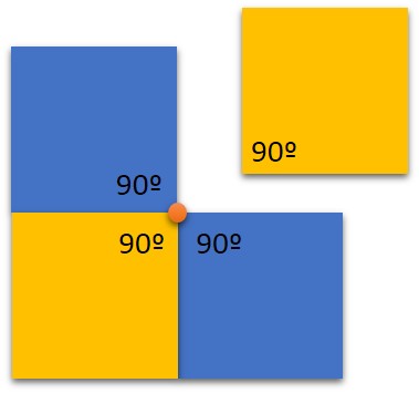 Una segunda solución es: X1=4; x2=4, es decir, cuatro cuadrados. Para que un cuadrado tesele el plano será necesario que concurran 4 figuras en un mismo vértice, pues: 360º : 90º = 4