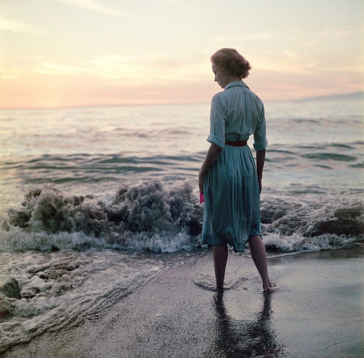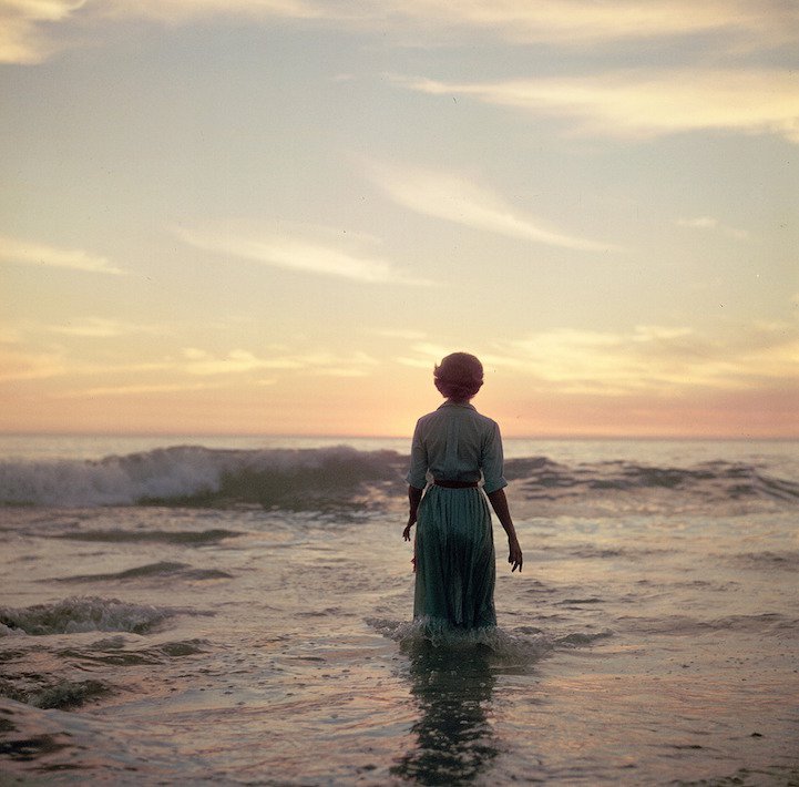 En muchas ocasiones (ya es una práctica muy habitual), el mar nos devuelve en botellas de cristal mensajes de todo tipo, desde un S.O.S. hasta una carta de amor y, este artilugio es ya habitual en ciertas narraciones literarias o cinematográficas. Pero la historia que os comento, es diferente: en este caso la botella de cristal que contiene el “tesoro” no es tal botella, es una tienda de segunda mano en Richmond, Virginia, donde la fotógrafa Meagan Abell, mientras compraba, se encontró con cuatro juegos de negativos de formato medio encerrados en fundas de plástico y guardados en una caja de antiguas fotografías vintage. Abell compró los negativos porque sintió curiosidad por las imágenes, los llevó a casa y los escaneó. Los impresionantes resultados, muestran dos mujeres jóvenes de pie en una playa, bañadas por la rosada luz de una puesta del sol de ensueño.