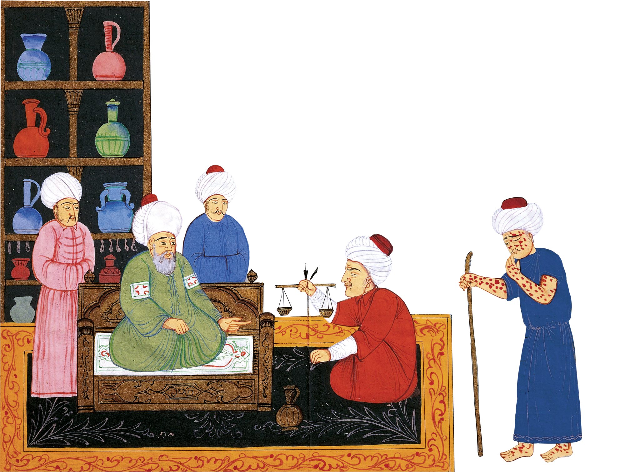 La aplicación de este sistema altamente sofisticado pone a los kémicos andalusíes en el más alto nivel científico. Una esmerada preparación caligráfica (el adiestramiento en la llamada “ilm al-qalam “ o “ ciencia de la pluma “, y el manejo eficaz de las siete fuerzas arcanas dela naturaleza, permitían al “hakim”(*), o “kémico “ medieval trazar en papel o en pergamino los caracteres precisos con los“atramentos” adecuado a cada caso. El agua o el suero de leche “desleían” después los trazos y conformaban así un remedio personalizado en el que intención ( “niyya”), onda de forma (“jit”) y fuerza natural extraída de la planta (“yinn”), actuaban al unísono para restablecer la salud del paciente.