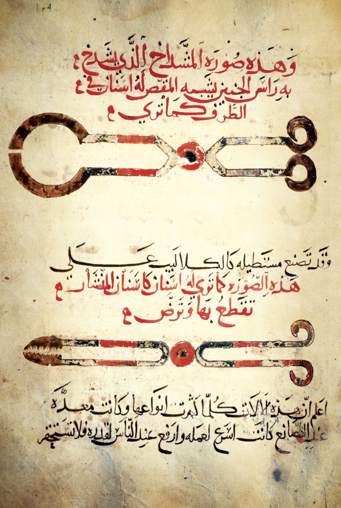 La cirugía conoció un notable desarrollo en el mundo islámico. Abajo, instrumental dibujado en una copia manuscrita de al-Tasrif, del andalusí Abulcasis, uno de los grandes cirujanos de todos los tiempos.