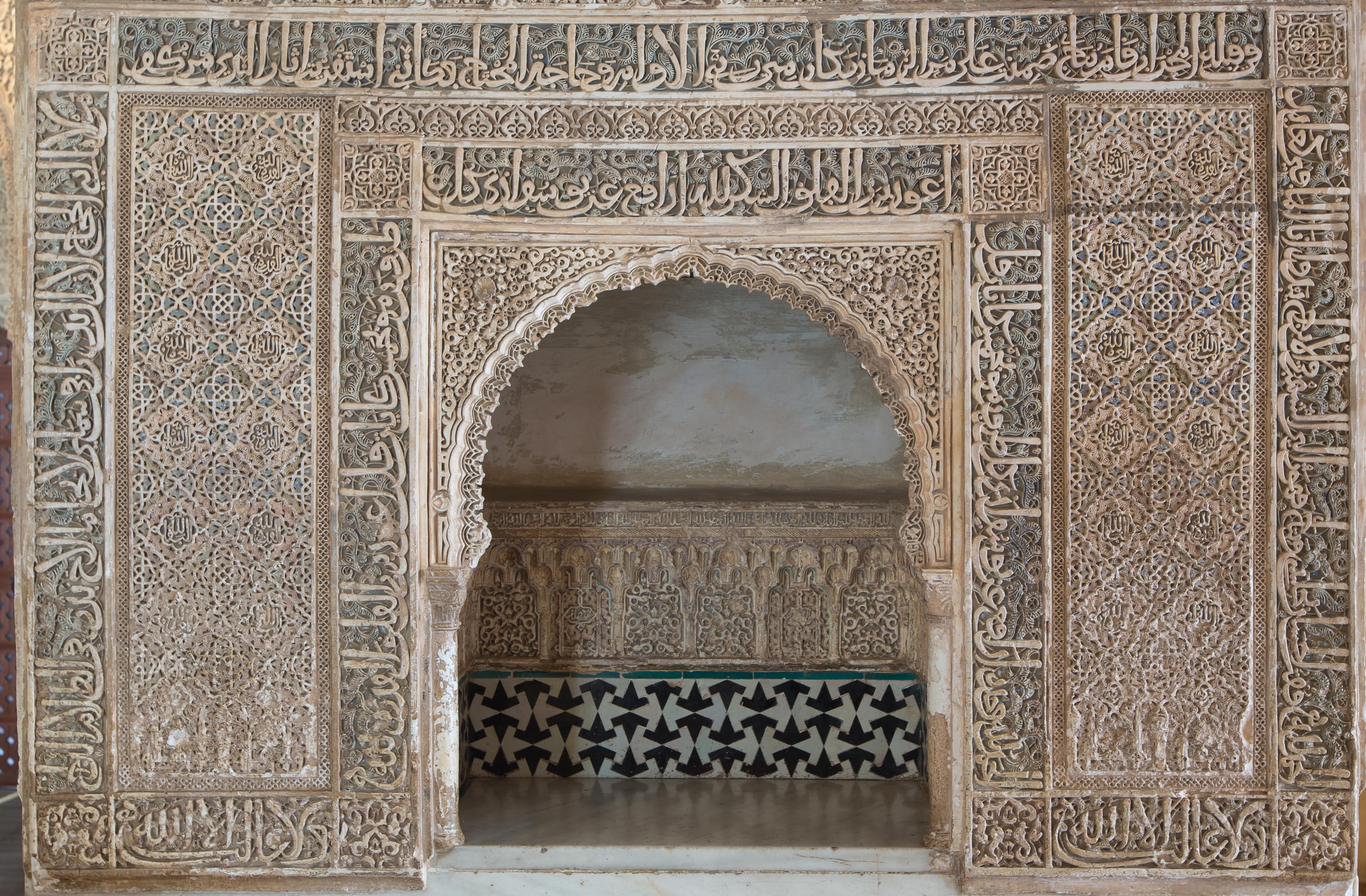 El polímata granadino Lisanuddín Ibn al-Jatib (1313-1375) en una de sus últimas obras, la Nufadat al-ÿirab fi ‘ulalat al-igtirab («Sacudida de alforjas para entretener el exilio»), Manuscrito de El Escorial Nº 1750, nos relata una recepción en la Alhambra, ofrecida por el sultán nazarí Muhammad V en 1362, durante la fiesta de inauguración de varias salas de la «fortaleza roja»: