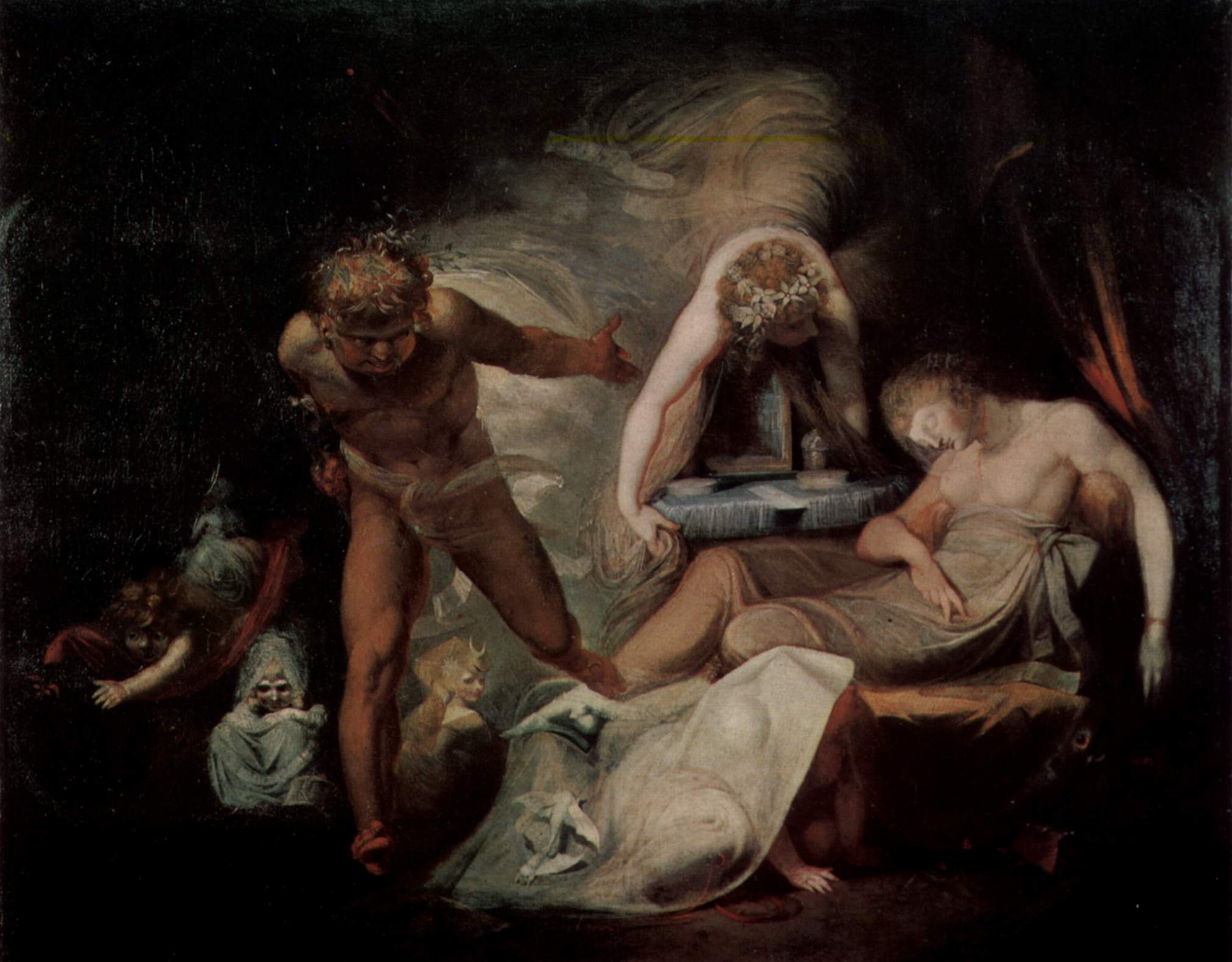 Por su parte, en El sueño de Belinda (1780-1790), el pintor toma a Shakespeare como fuente, al Shakespeare más mágico y nocturno. Incorpora extraños seres de apariencia fantasmal y adopta el muy romántico tema del sueño, representando figuras entre monstruosas e imaginarias surgidas de mitologías distintas a la clásica.