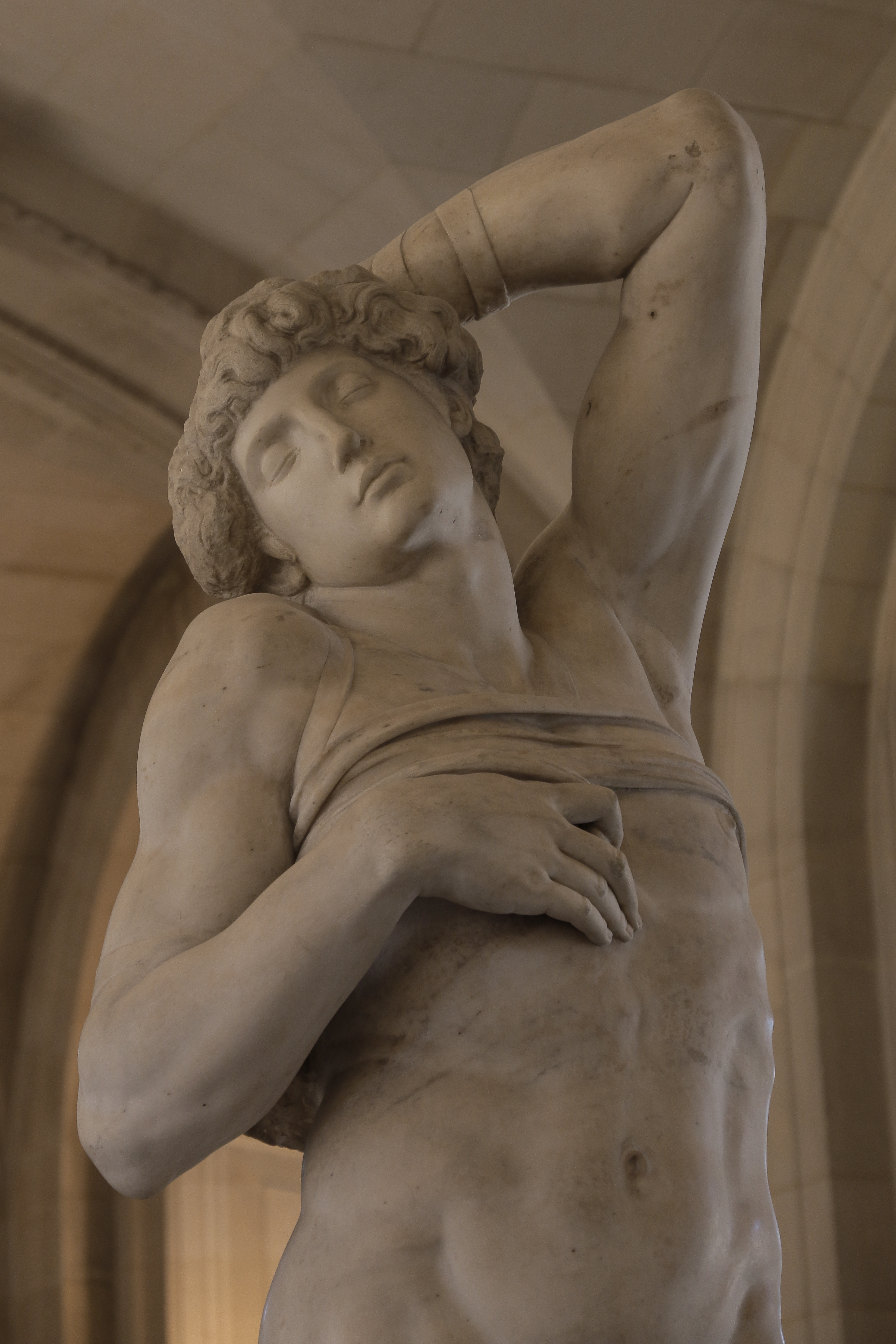 Es difícil darse cuenta que esta obra es una estatua de piedra fría y sin vida cuando nos hallamos frente a ella en el Louvre de París. Parece moverse ante nuestros ojos, y, sin embargo, está quieta. Tal efecto es, sin duda, el que Miguel Ángel se propuso conseguir.