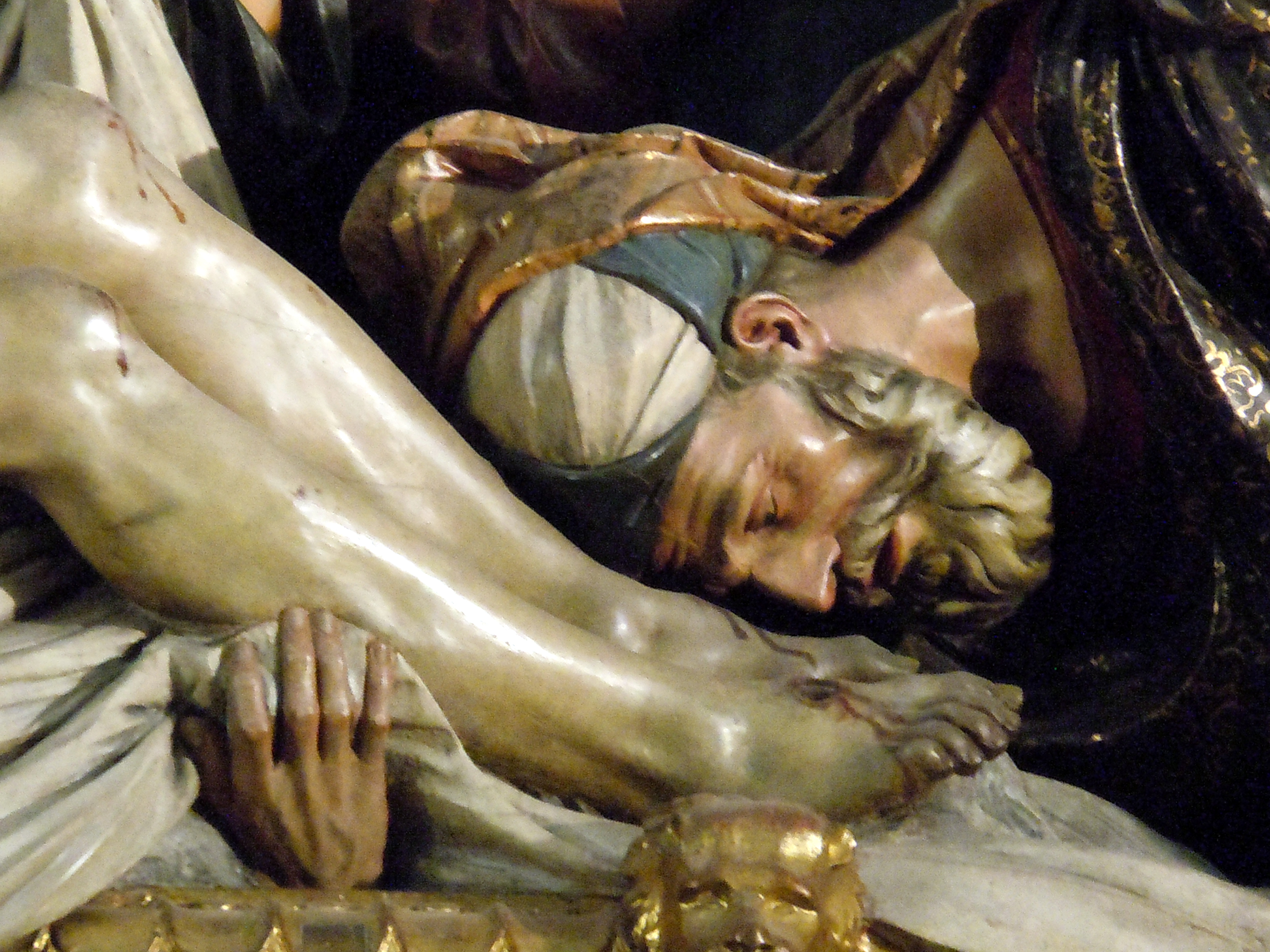 Esta obra se refiere a la dedicación que los hermanos debían tener con los enfermos de llevarlos al hospital. Describe el momento en el que este santo granadino, que transporta por la noche a un enfermo cargado a sus espaldas, es vencido por el peso y está a punto de caer al suelo, circunstancia que impide un ángel que se le aparece para ayudarle en su misericordiosa tarea.