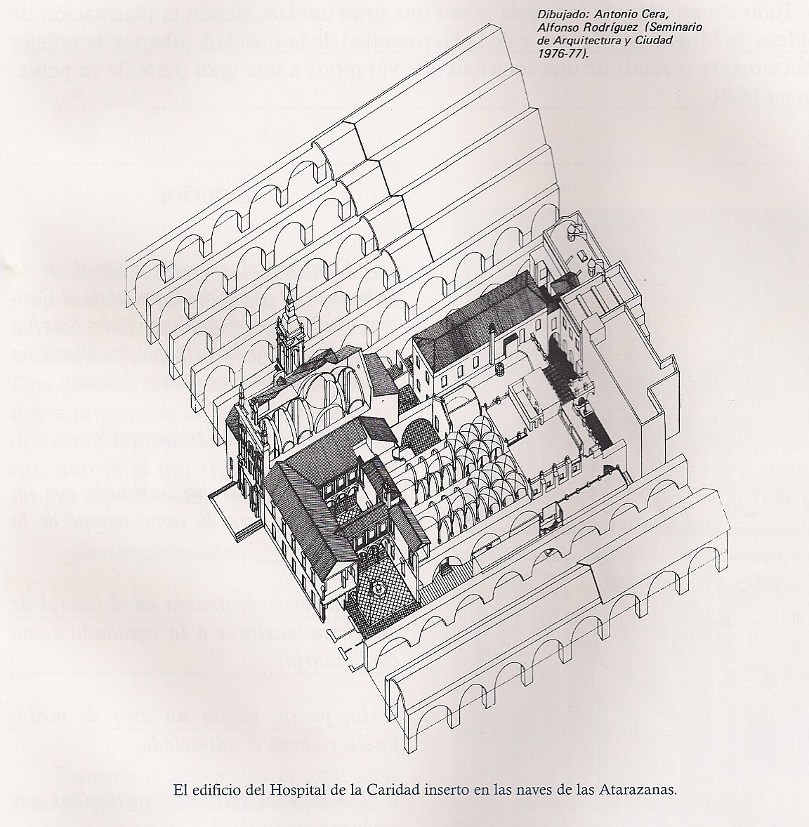 En 1670, una vez terminada la iglesia, Miguel de Mañara impulsó la construcción del hospital, completando tres salas. Para su construcción se aprovecharon las naves colindantes de las antiguas atarazanas reales que había mandado edificar el rey Alfonso X, en 1252.