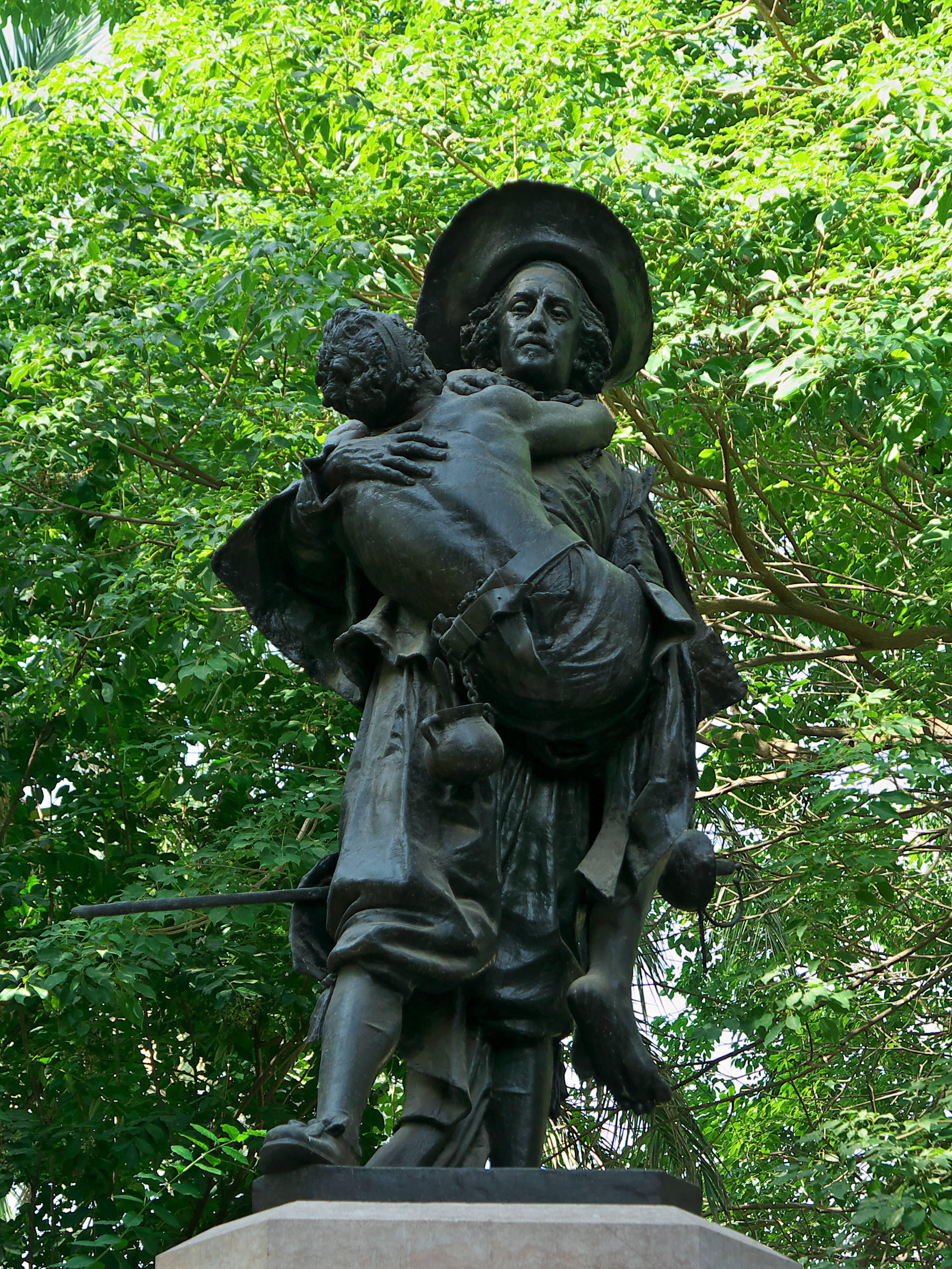 Estatua de Miguel de Mañara. Fue realizada en bronce en 1902 con el modelo original de la estatua de Mañara del palacio de San Telmo por Antonio Susillo (1857-1896). Jardines de la Caridad, frente al hospital de la Caridad.