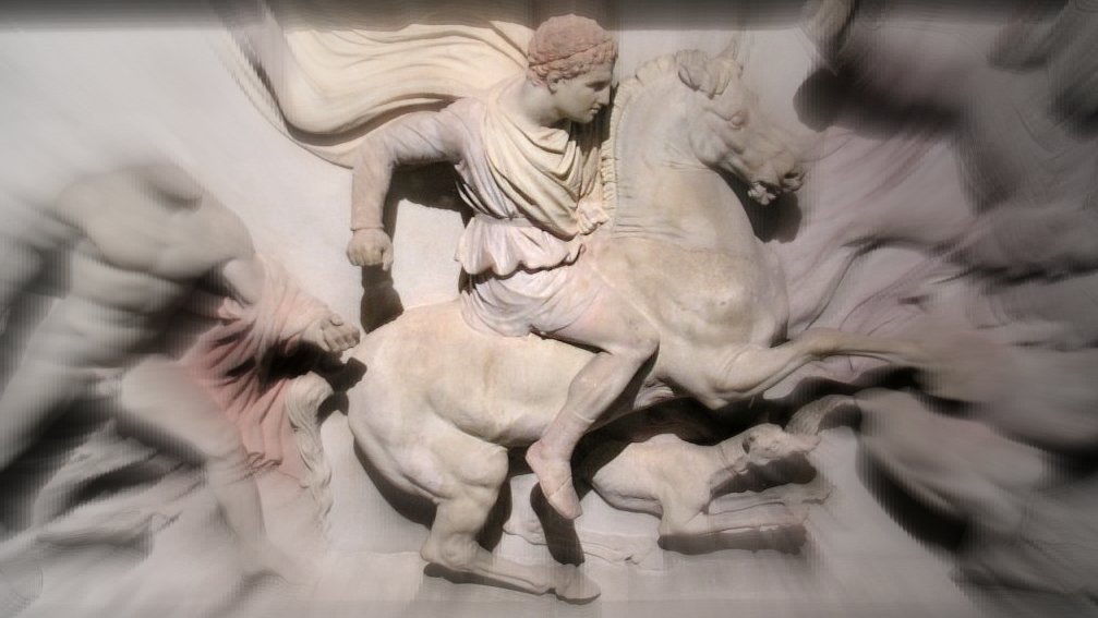 Al igual que el resto de la escultura helenística, los artefactos funerarios adquirieron durante esta época cierto carácter arquitectónico que las configuraba como elementos monumentales, así es común que los sarcófagos como este que aquí analizamos adquieran las formas de los templos con la tapa a modo de tejado. La obra, tallada en mármol representa un templo griego, con un magnifico frontón. En una de sus caras, se puede observar al propio Alejandro en la famosa batalla de Issos, cuando derrotó a Darío III. El rey macedonio va a caballo, con una piel de león en la cabeza; está atacando con una lanza a un persa que ha caído del caballo. En la otra cara nos encontramos con una cacería de leones en la que se ve a Alejandro junto a Abdalónimo; finalmente, en los laterales se observa al mismo Abdalónimo cazando una pantera y en el otro lateral una batalla desconocida, quizás Gaza.