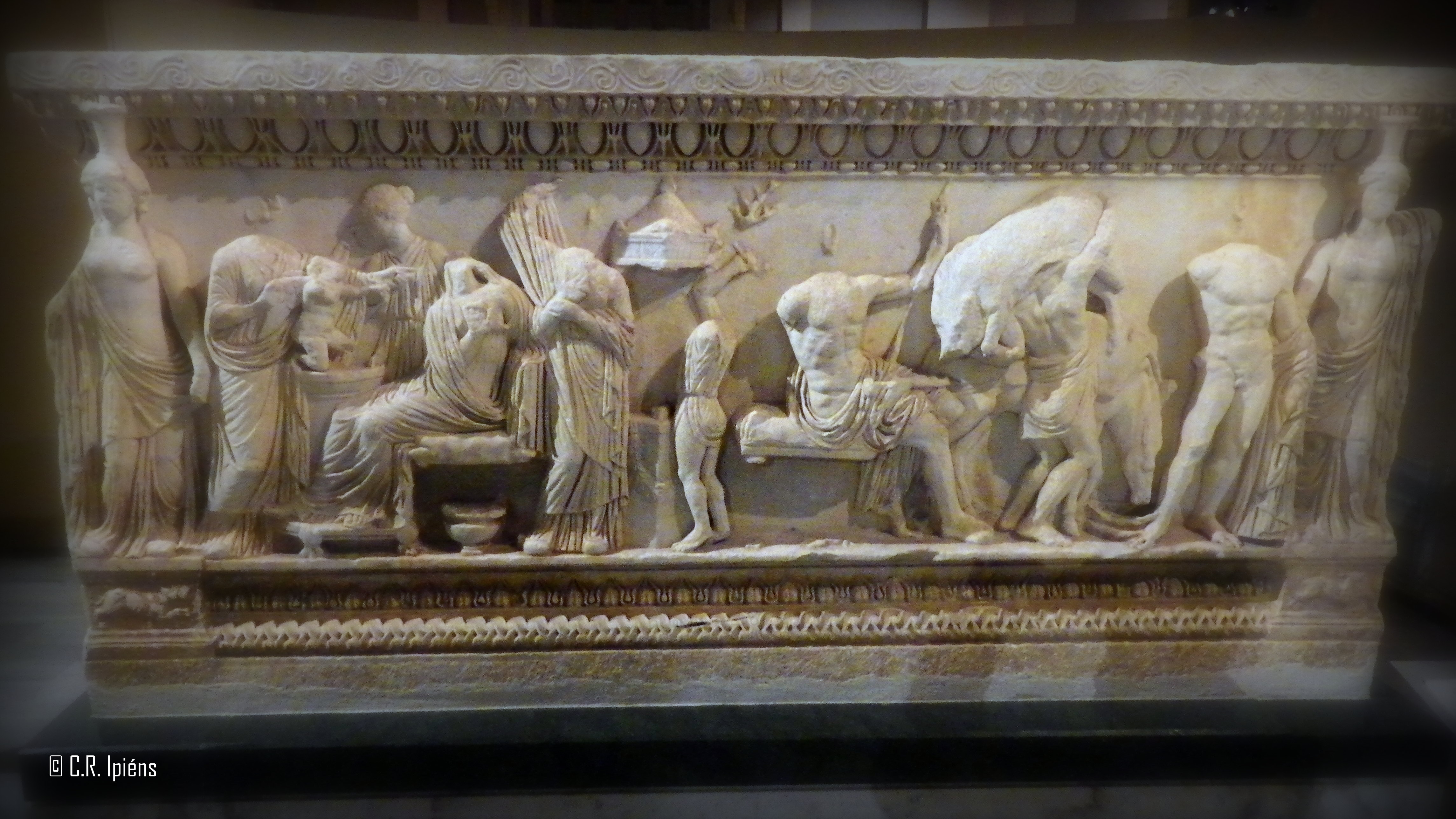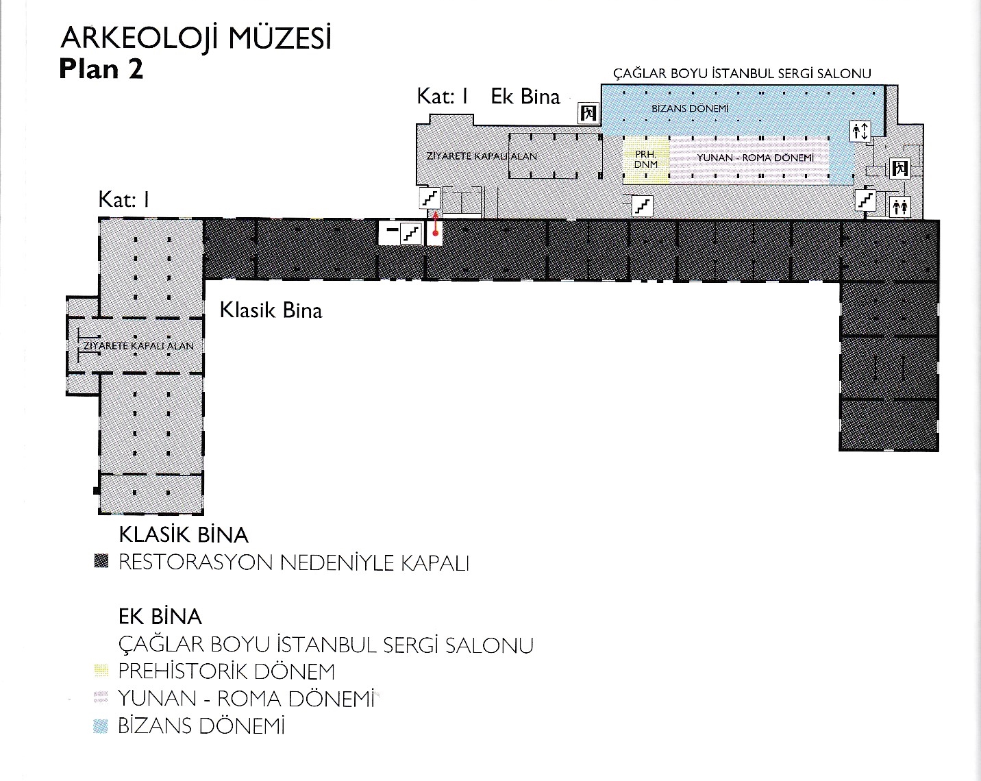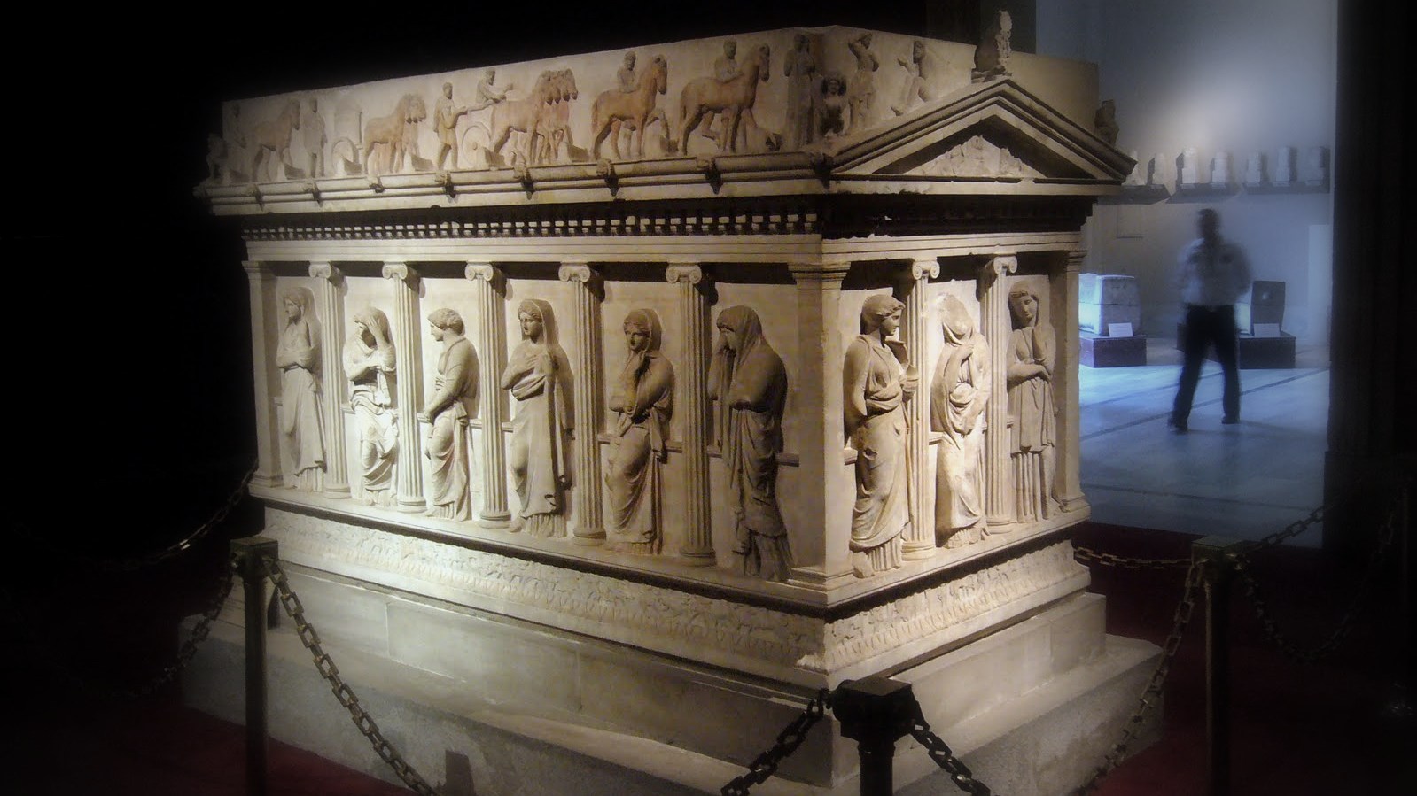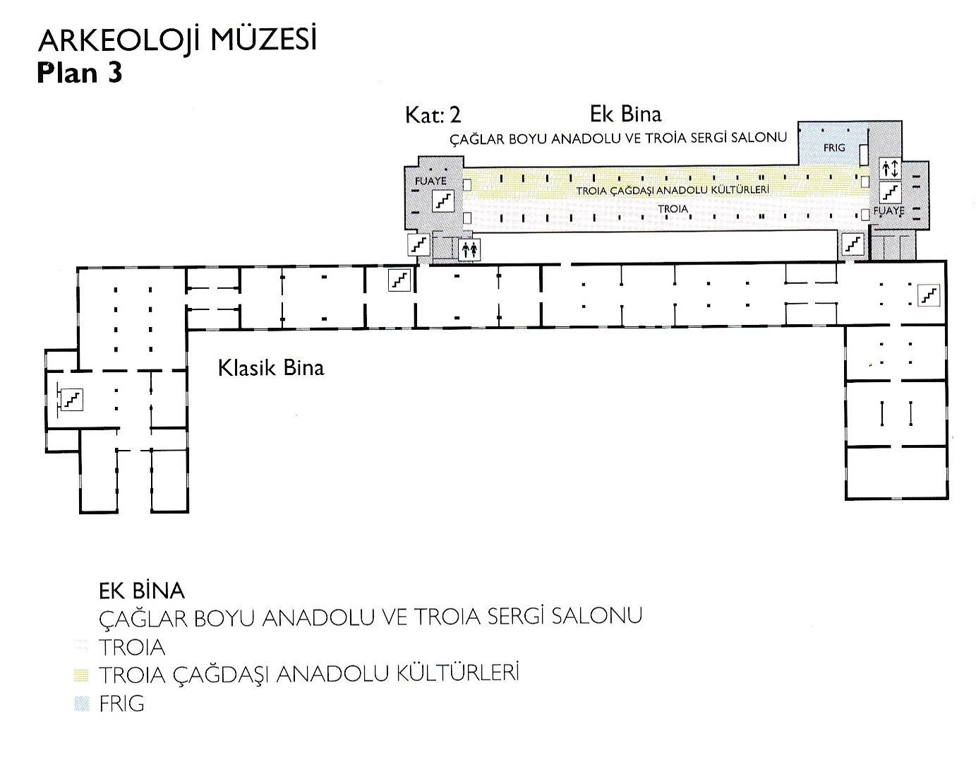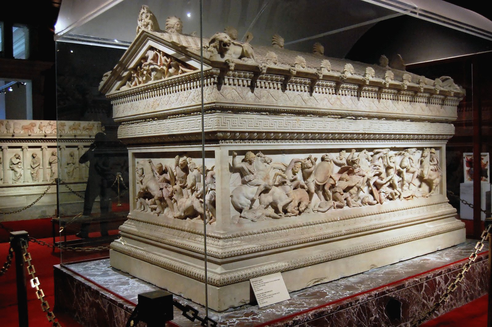 El edificio principal del Museo Arqueológico de Estambul, además de su gran sección de sarcófagos alberga en tres plantas colecciones del periodo bizantino, que denominan “Estambul a lo largo del tiempo”. Comparten espacio también Anatolia y Troya mas culturas adyacentes a Turquía (Chipre, Siria y Palestina). Alberga algunos objetos mundialmente conocidos. Lo más importante del museo es la gran colección de sarcófagos, entre los que destacamos el Sarcófago de Alejandro (S. IV) y el de Las plañideras. Cabe igualmente destacar entre otras innumerables obras, la estatua de Marsias, la estatua y busto de Alejandro Magno, Sapho…y una buena colección de Tracia, Bitinia y Bizancio, y algunas piezas del tesoro de Schliemann, procedentes de Troya.