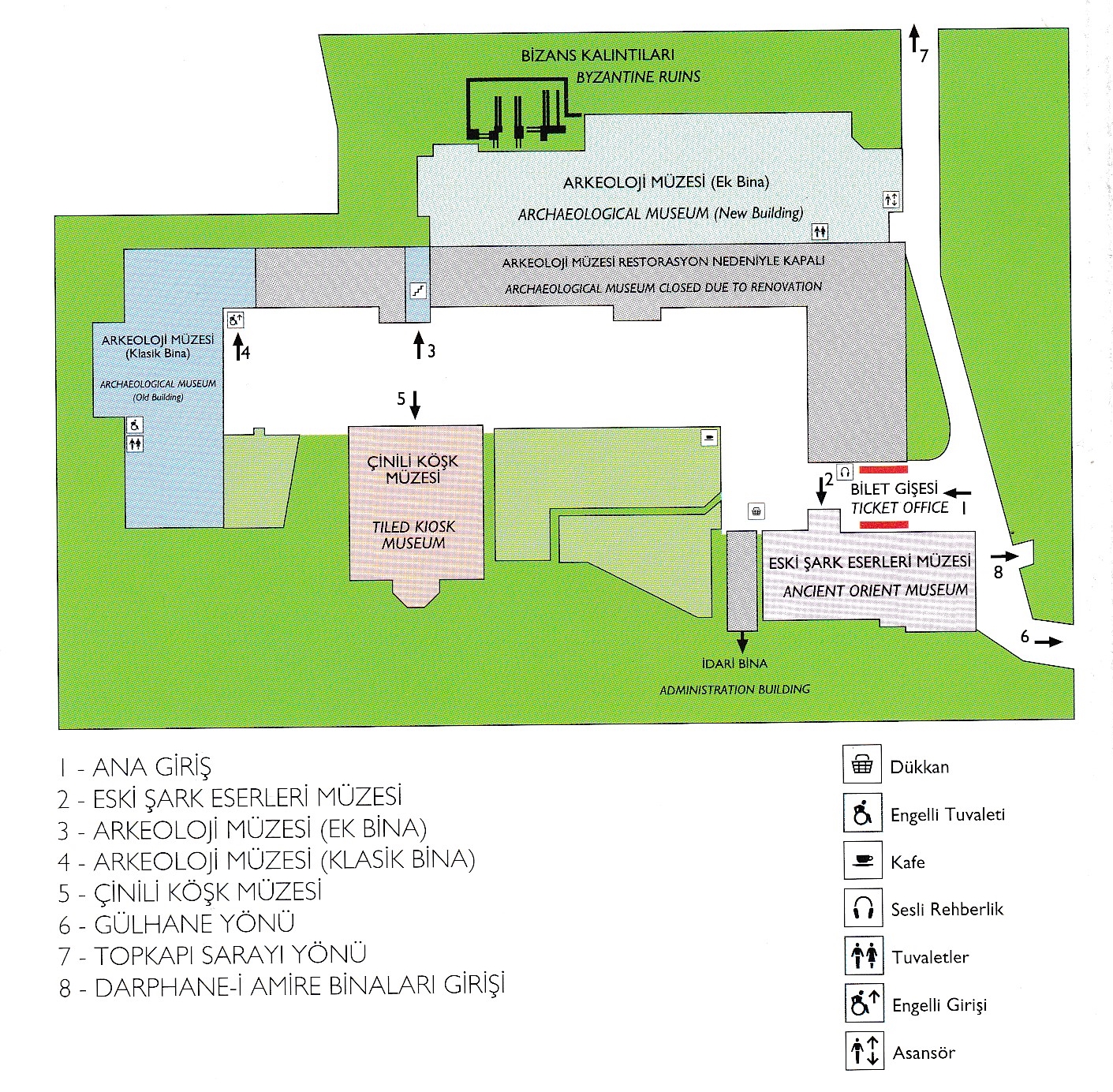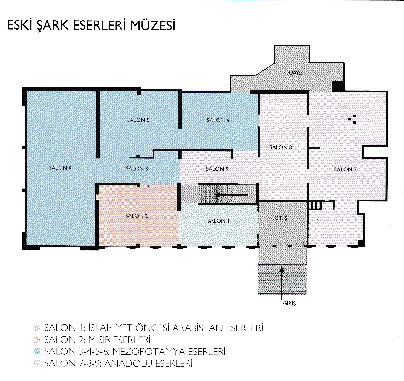 En este edificio podemos encontrar sepulcros otomanos y hallazgos de las culturas egipcia, sumeria y acadia. También puede admirarse uno de los vestigios más interesantes para el estudio de la historia de la diplomacia: la tablilla original en acadio, del célebre tratado de paz de Qadesh, suscrito el año 1270 antes de Cristo por el faraón Ramsés II y el soberano hitita Muwatalli II. Además, se conservan aquí, entre otras piezas raras, algunos espléndidos bajorrelieves del palacio de Asurnasirpal II procedentes de la hoy destruida Nimrud (Irak); sin olvidar algunos estupendos ejemplares del fantástico animalario en ladrillo vidriado que adornaba la avenida de las procesiones en la antigua Babilonia (Irak), y otras piezas procedentes de Nínive (Irak).